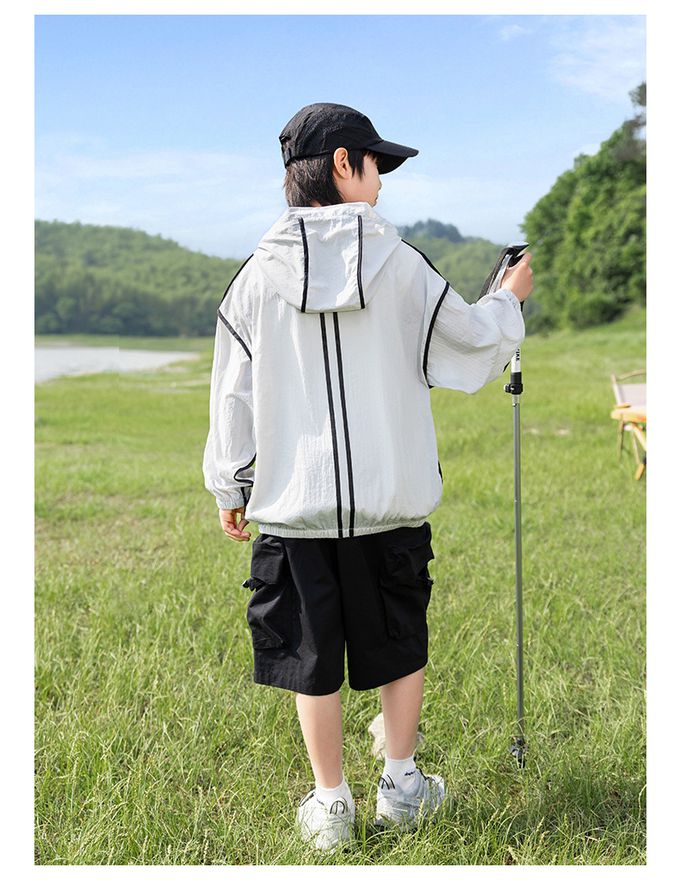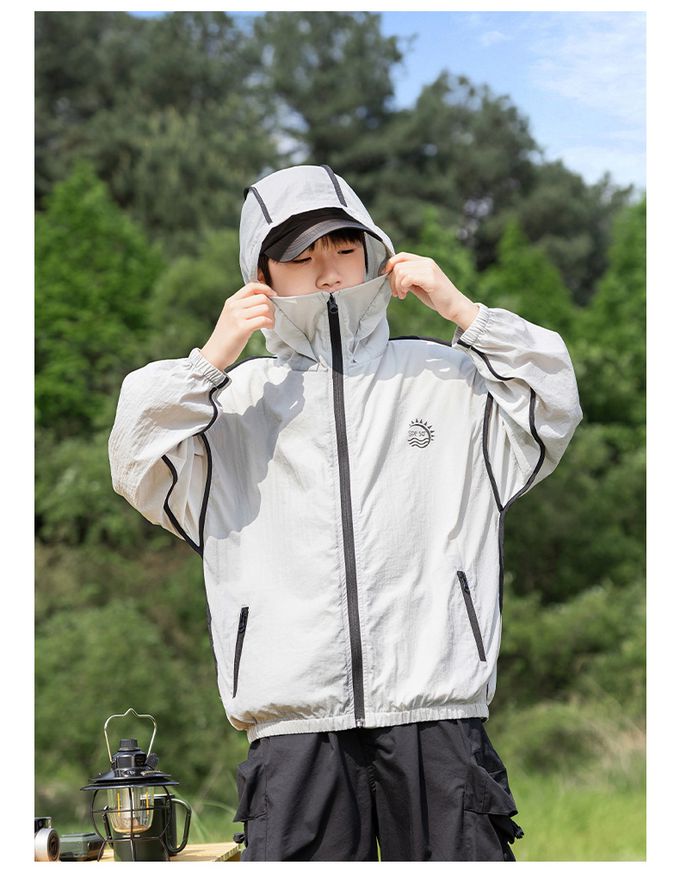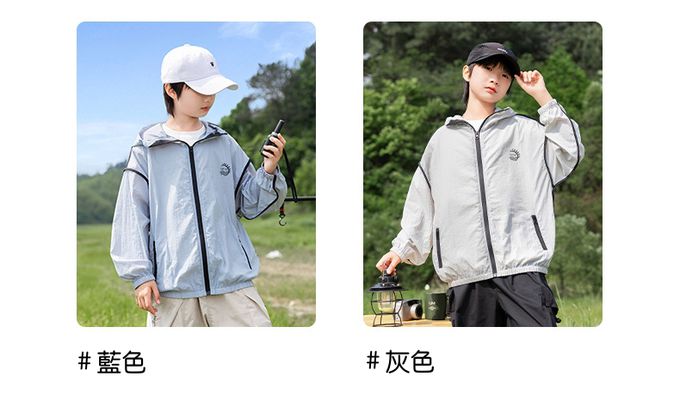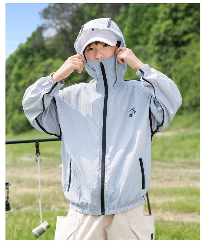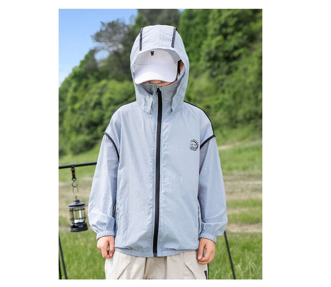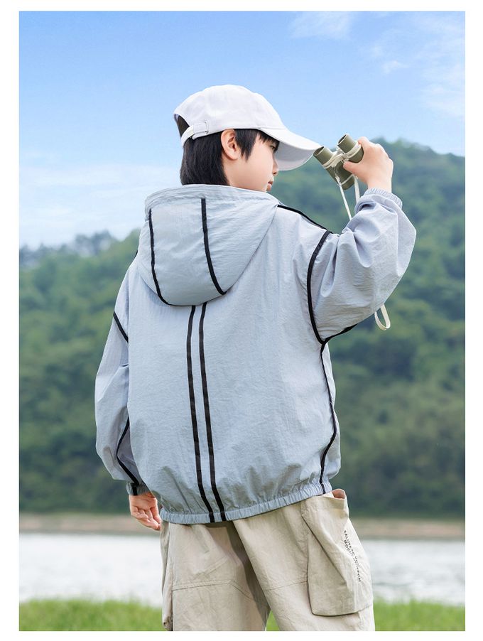 UPF50+原紗防曬連帽外套-黑滾邊-藍色