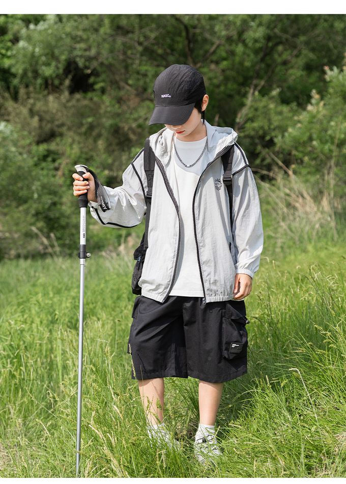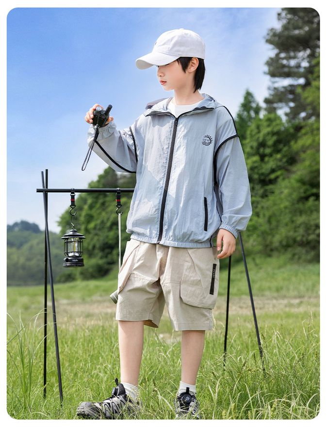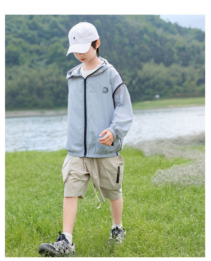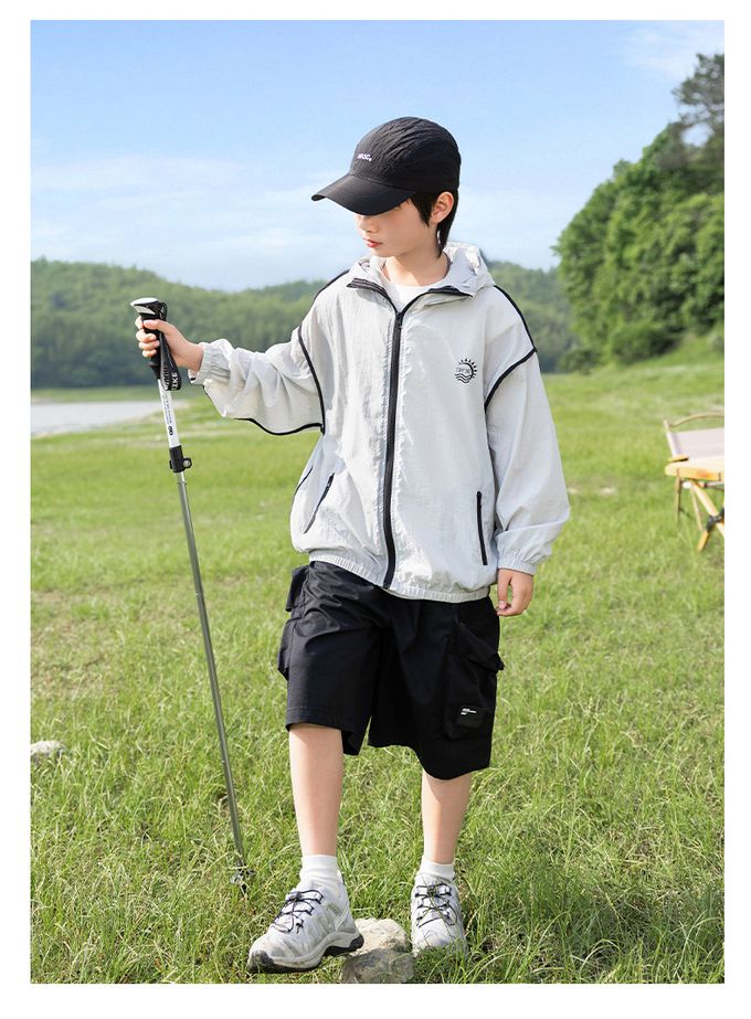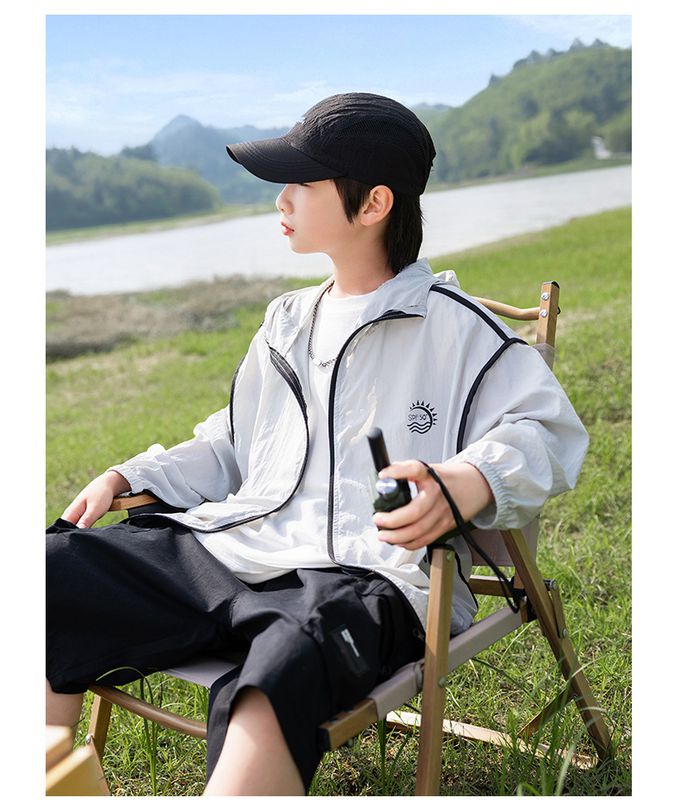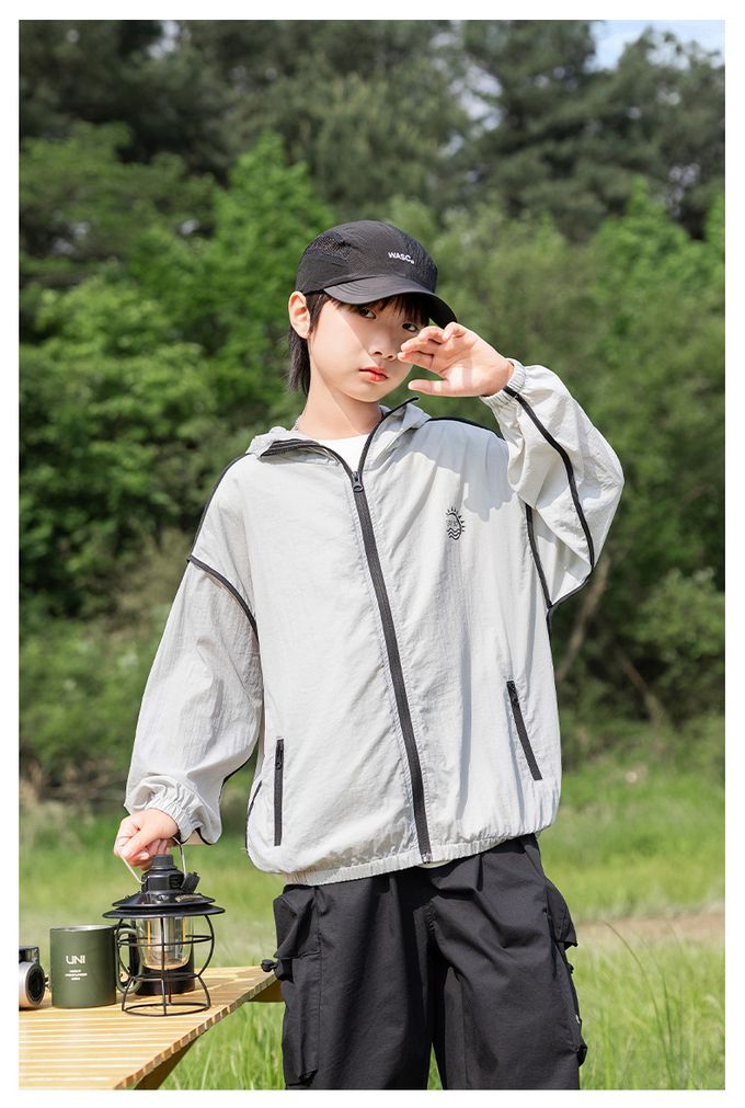 UPF50+原紗防曬連帽外套-黑滾邊-藍色