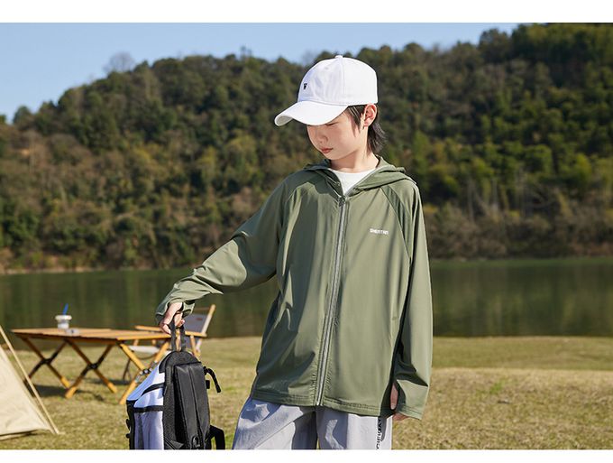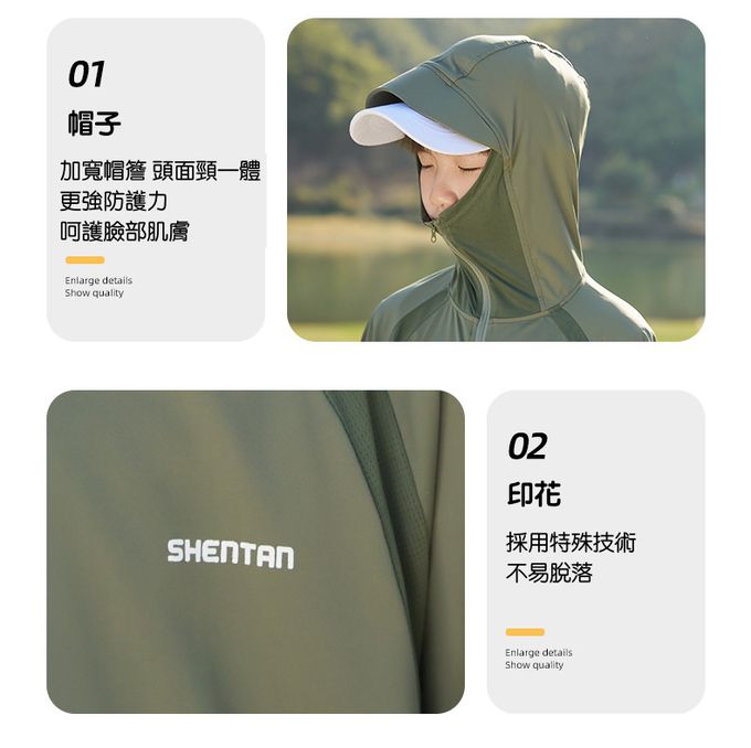 寬大帽檐、頭面頸一體設計,呵護寶貝肌膚