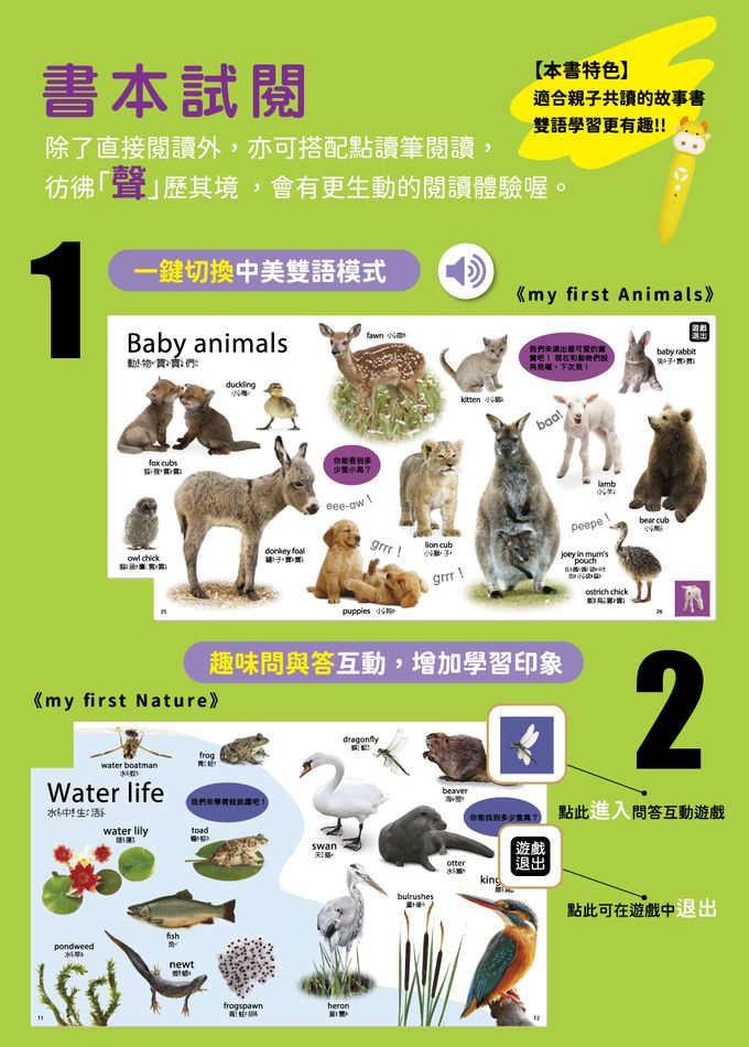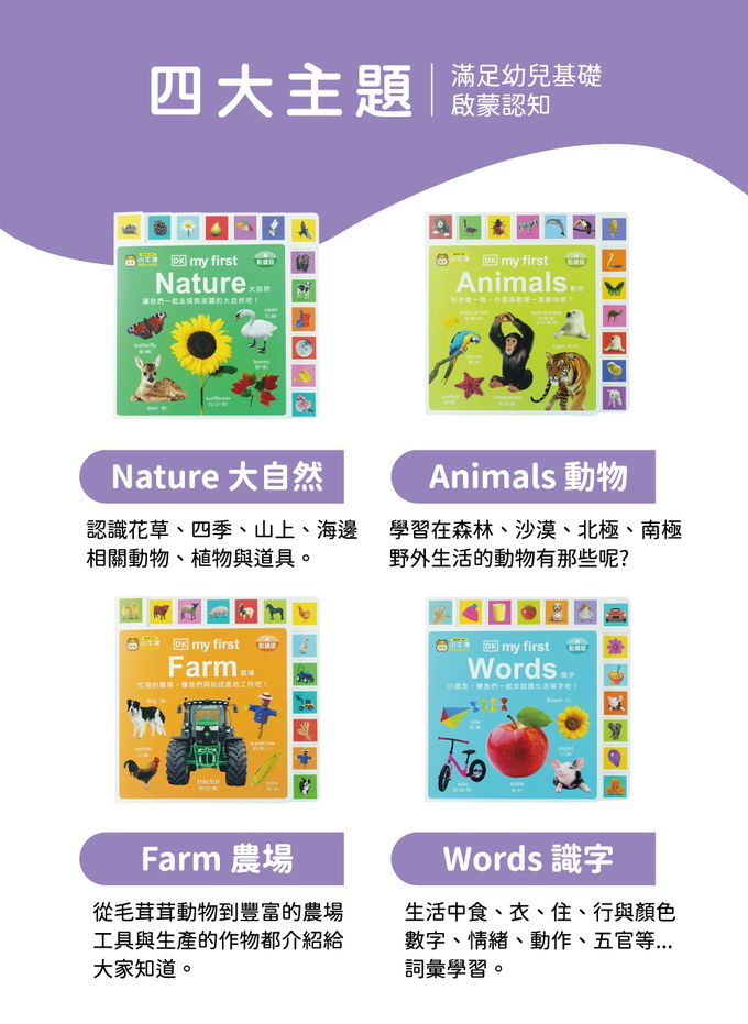 品名:【點讀套組】英國DK授權-my first 幼兒認知系列(識字+大自然+農場+動物)+64G奶茶牛點讀筆 鉑金典藏版