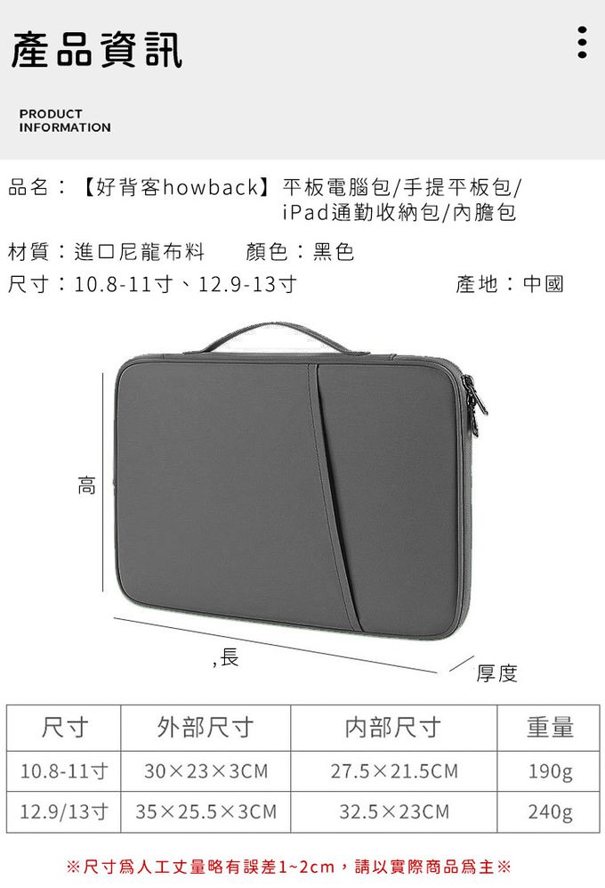 商品重(容)量:10.8/11吋:30x23x3cm