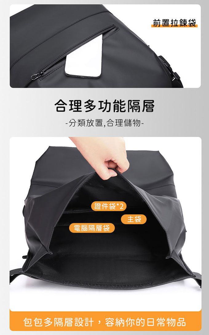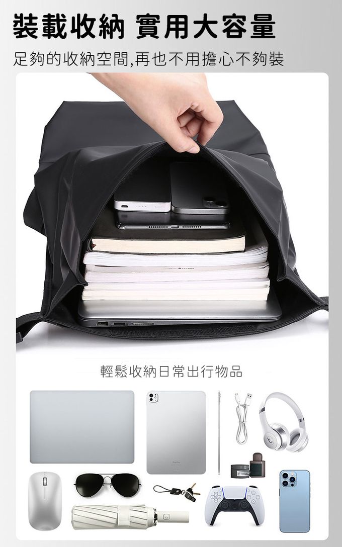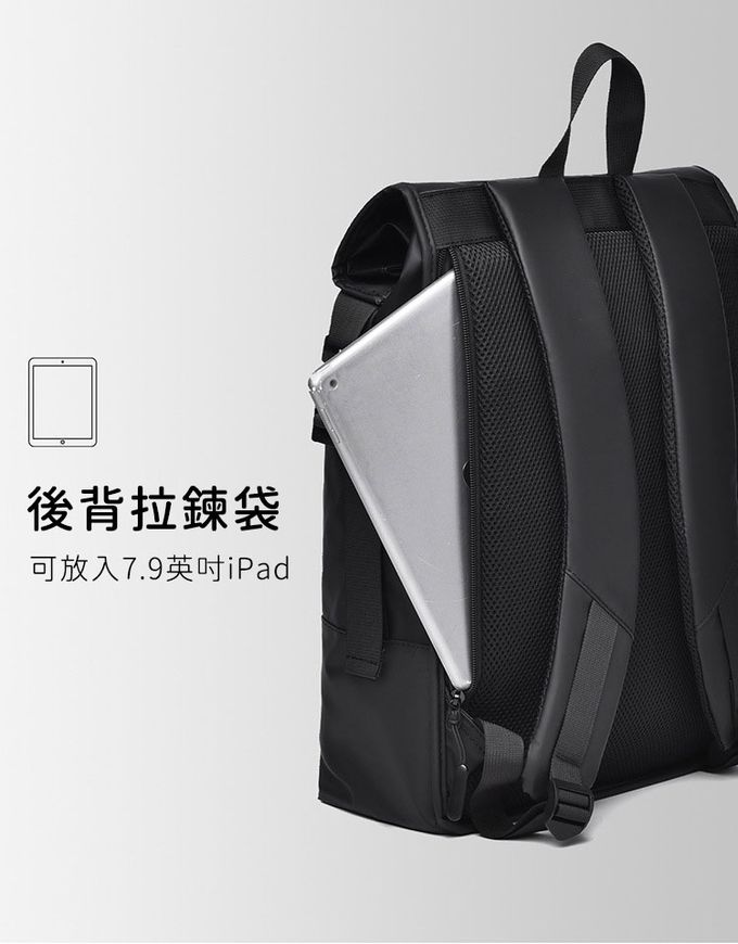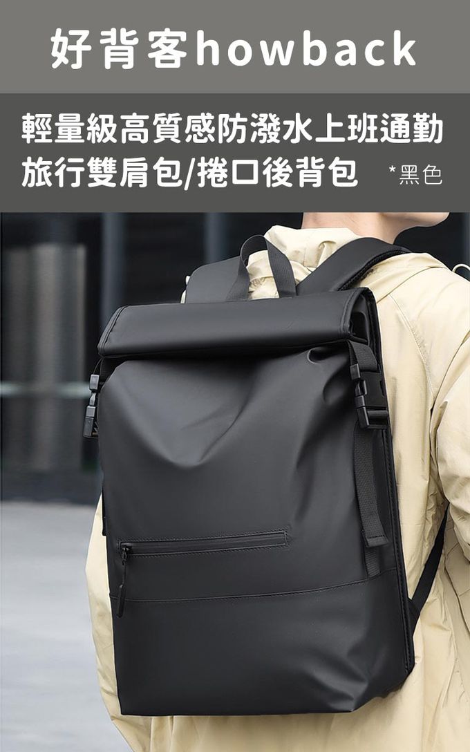 品名:輕量級高質感防潑水上班通勤旅行雙肩包/捲口後背包-黑