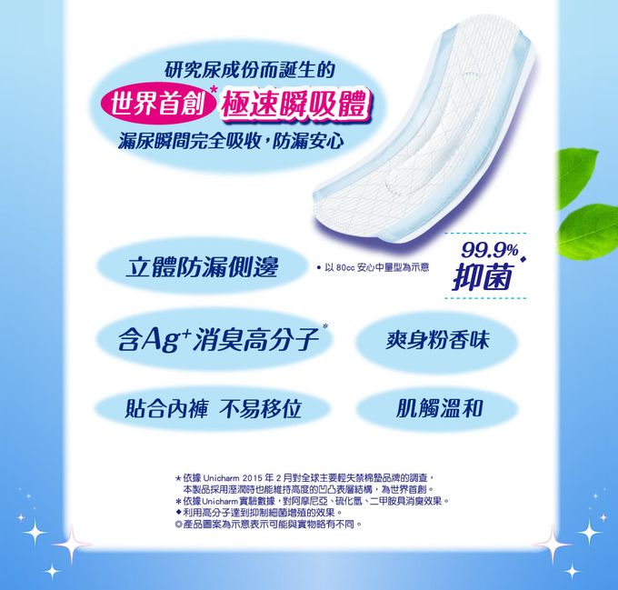 材質:表面-PO聚烯烴不織布、吸收材-高分子吸收體、棉狀紙漿、吸水紙