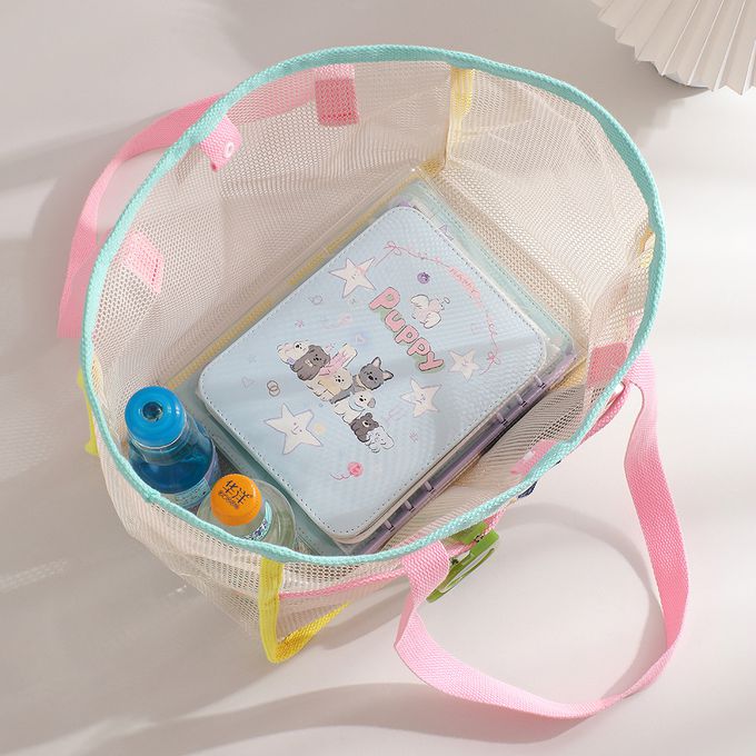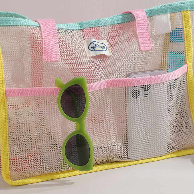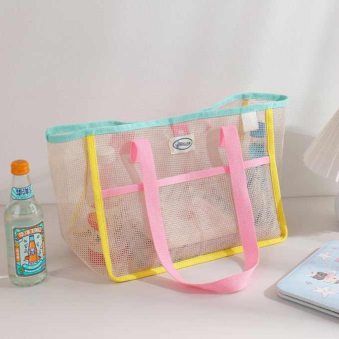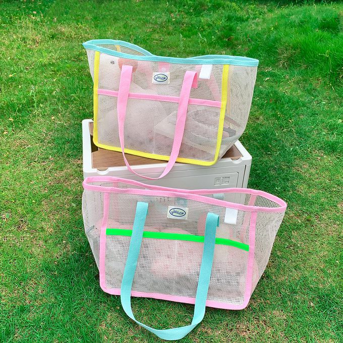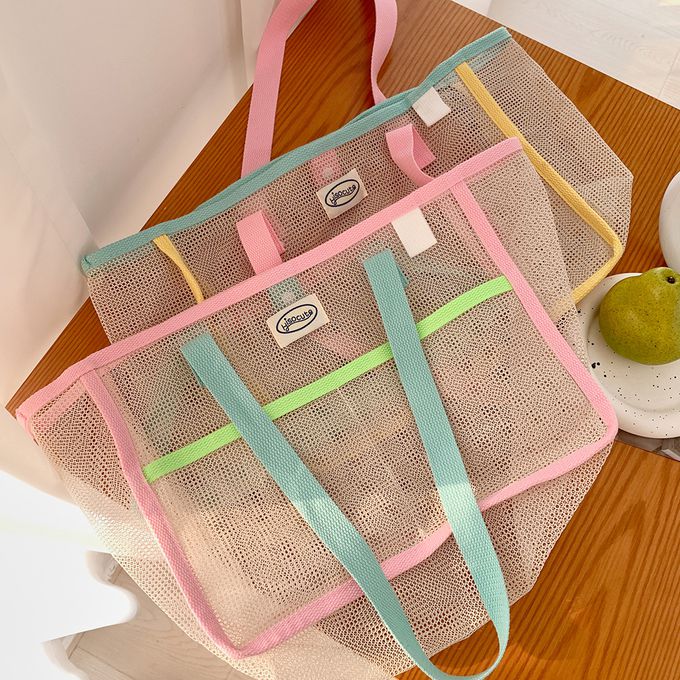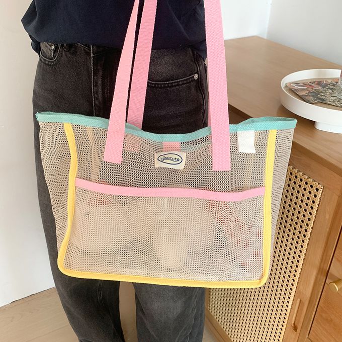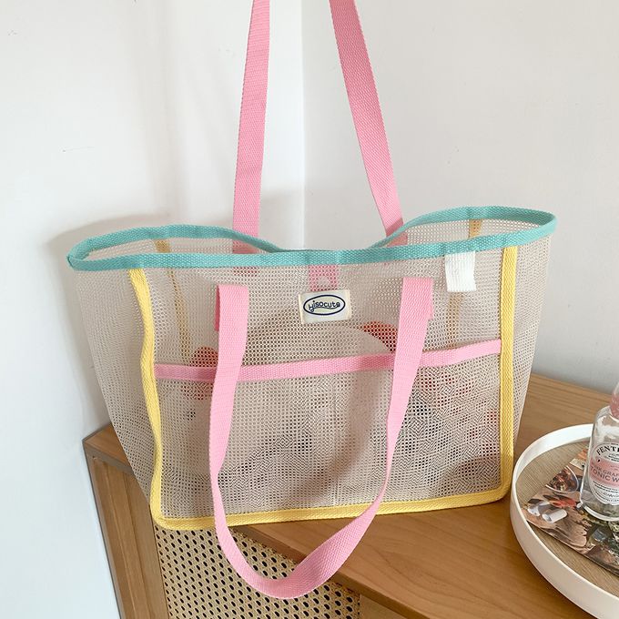 實用輕便肩背網紗包/沙灘包-拼色綠 (25×20×35cm)