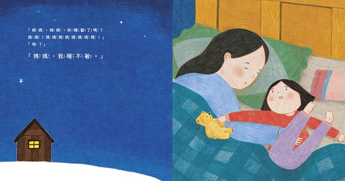 「媽媽、媽媽,你睡著了嗎?」、「媽媽,我睡不著……」