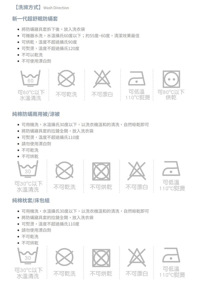 ●可機器水洗,水溫攝氏60度以下;約55度~60度,清潔效果最佳