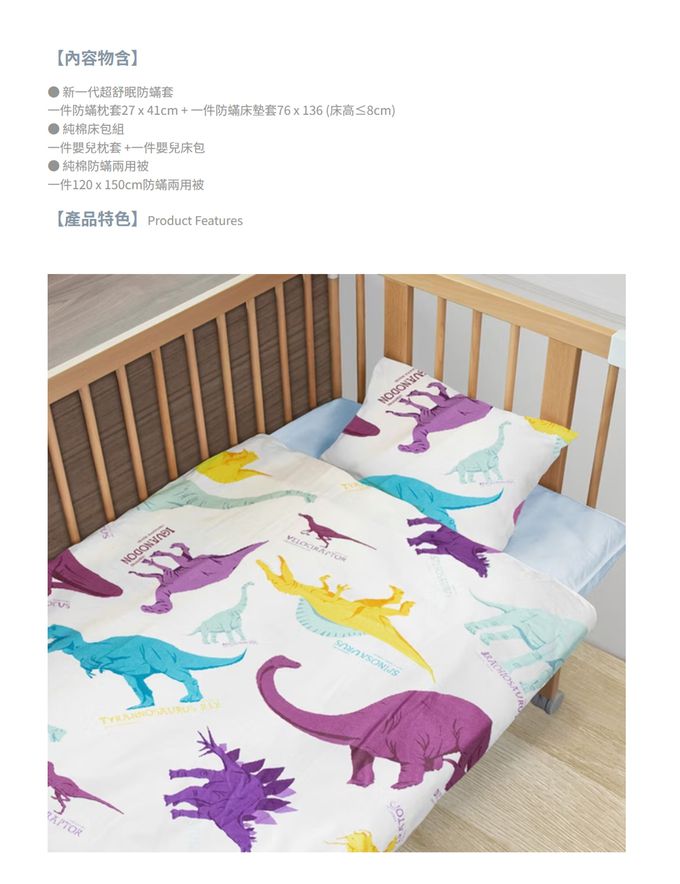 一件防蟎枕套27 x 41cm + 一件防蟎床墊套76 x 136 (床高≤8cm)
