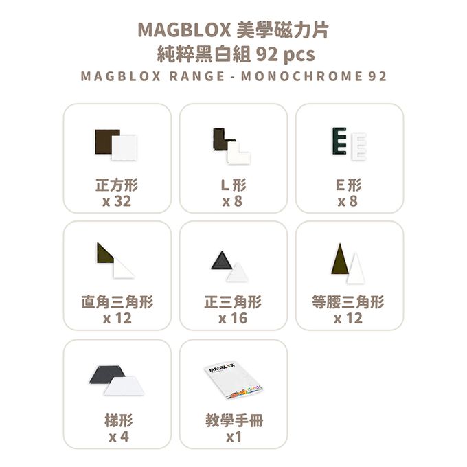 l MAGBLOX 澳洲 美學磁力片 純粹黑白組92pcs l