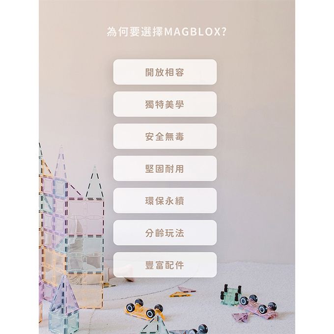 磁力片是近年風靡全球的開放式建構玩具,能培養孩子的專注力、創造力、思考邏輯、想像力、解決問題等幼兒必備認知能力。