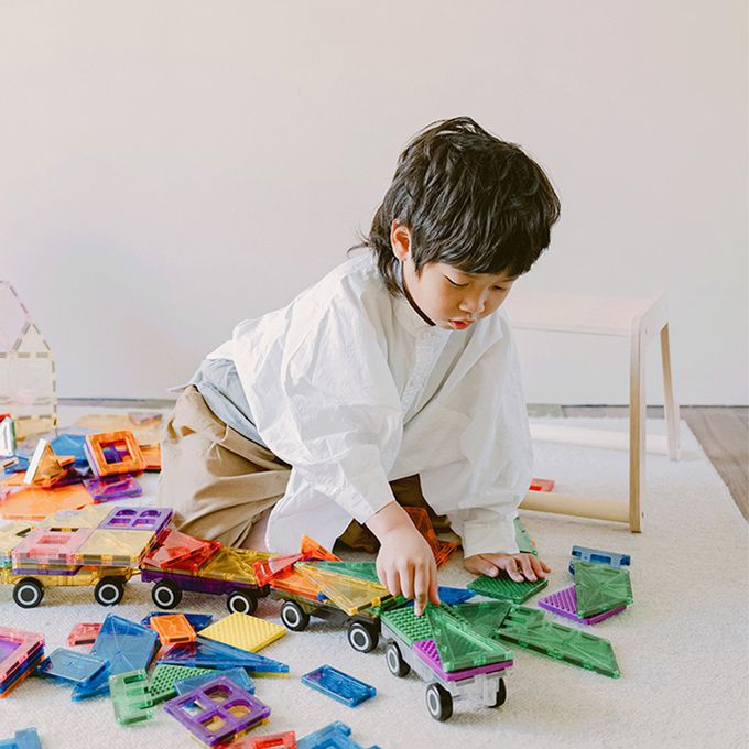 磁力片的玩法自由、充滿變化,可以搭配不同造型的磁力片與配件,讓孩子在沒有規則限制下,鼓勵孩子自由發揮,創造出各種無限可能!