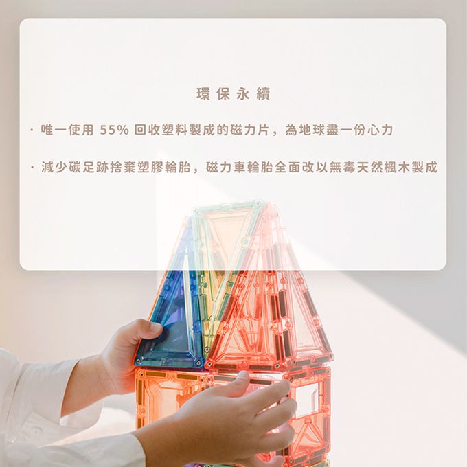 磁力片是近年風靡全球的開放式建構玩具,能培養孩子的專注力、創造力、思考邏輯、想像力、解決問題等幼兒必備認知能力。