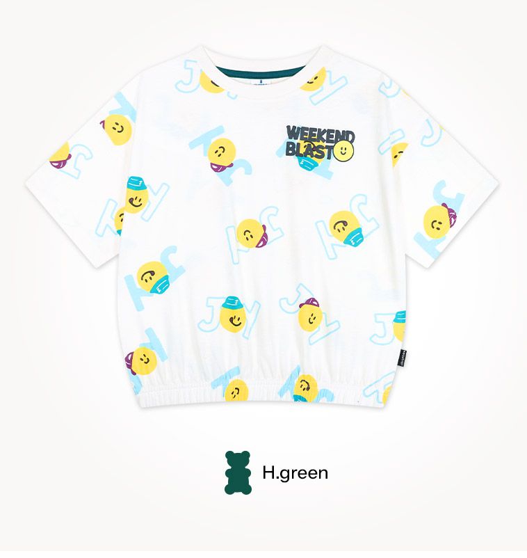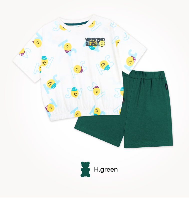 韓國 Jelispoon - JOY笑臉短袖套裝-白X深綠