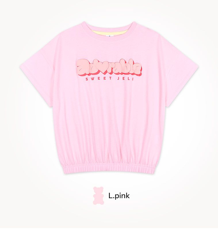 韓國 Jelispoon - 可愛氣球文字縮腰短袖套裝-粉