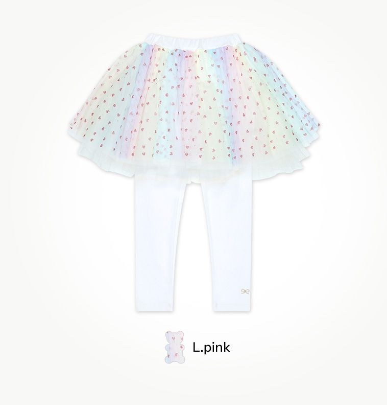 韓國 Jelispoon - 鬆緊腰愛心點綴夢幻網紗裙內搭褲