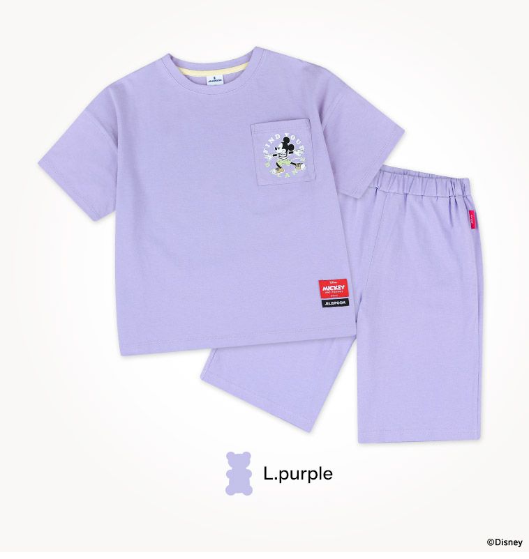 韓國 Jelispoon - (聯名款)卡通人物露營趣短袖套裝-薰衣草紫