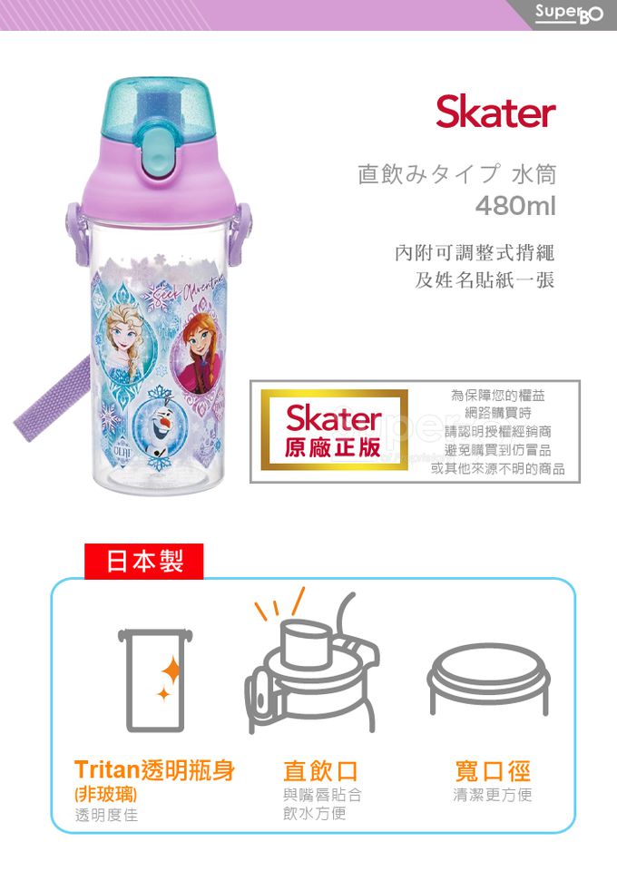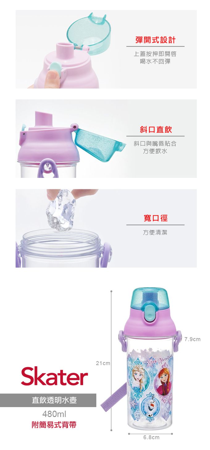 日本 SKATER - (兒童)直飲式透明水壺-迪士尼公主My Day-480ml