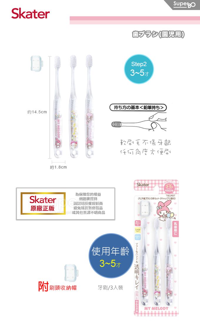 日本 SKATER - (任)兒童牙刷(3-5歲)3入組-美樂蒂