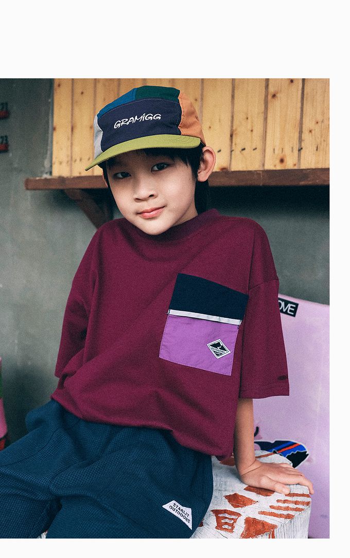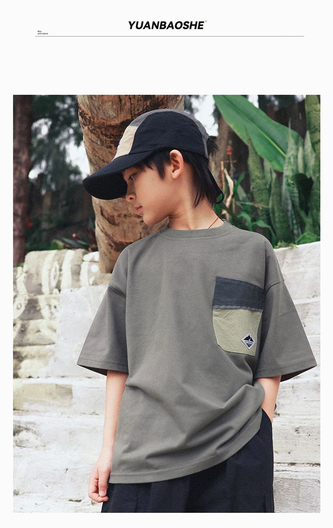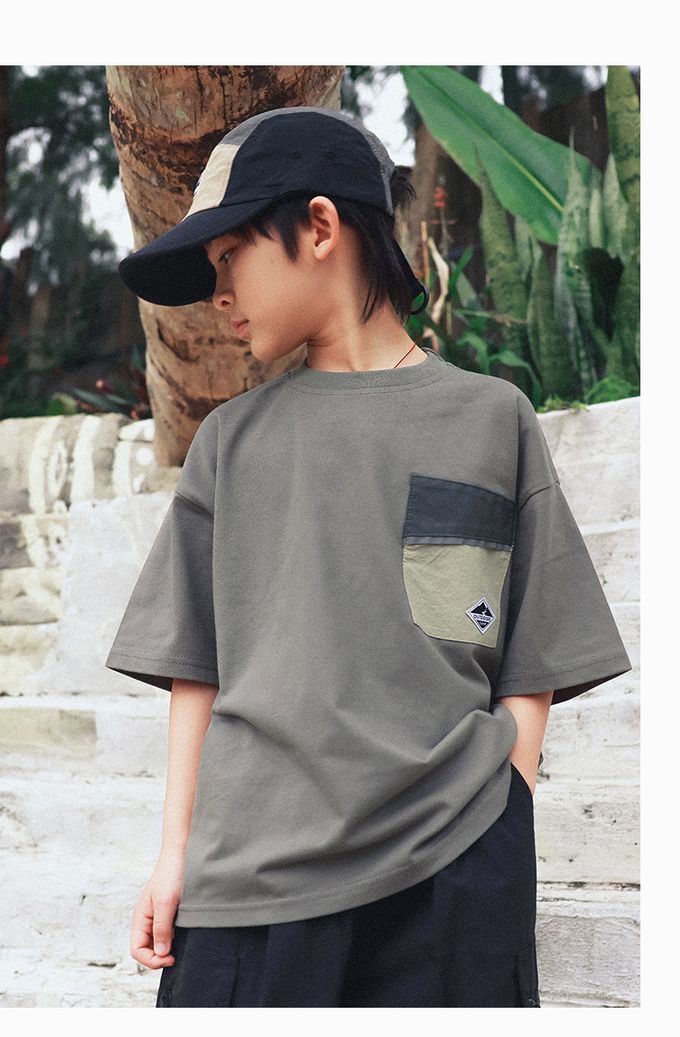 Y B S - 純棉圓領短袖上衣-撞色拼接口袋-綠色