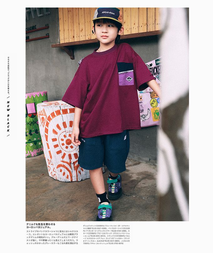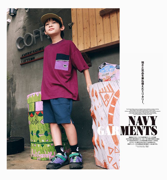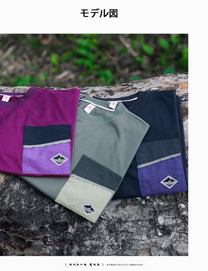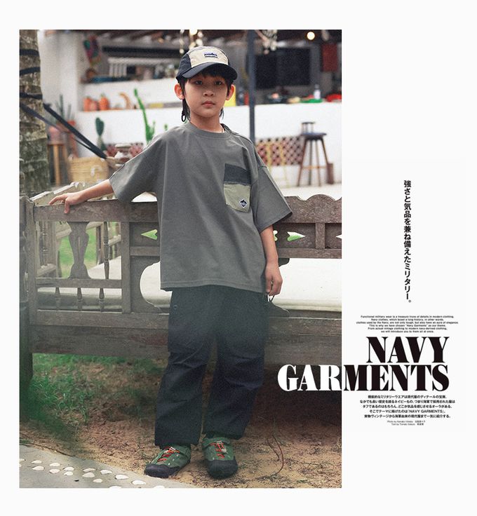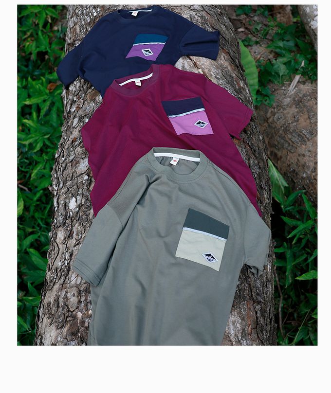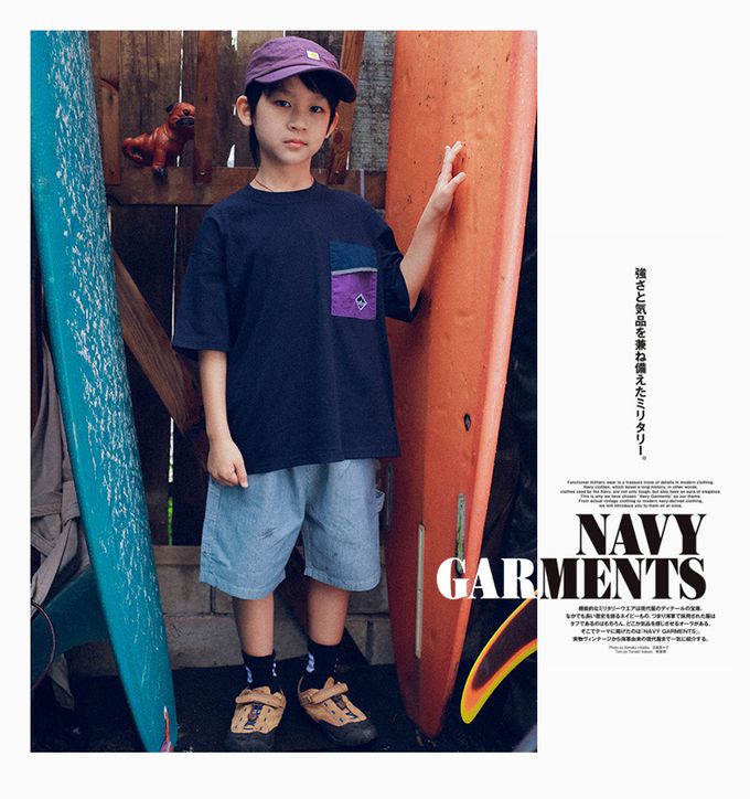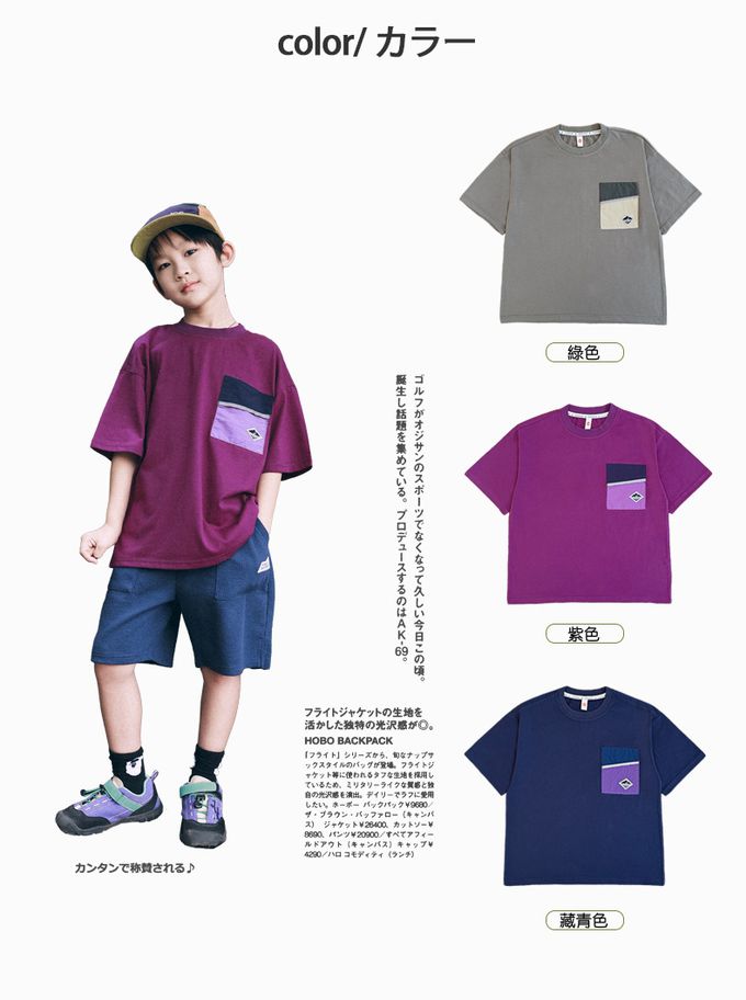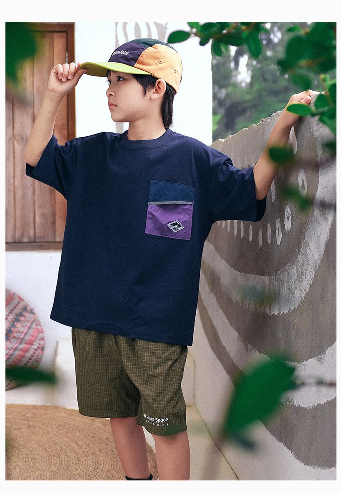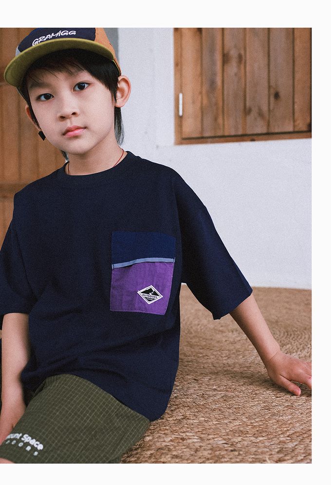 Y B S - 純棉圓領短袖上衣-撞色拼接口袋-藏青色