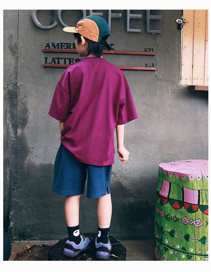 Y B S - 純棉圓領短袖上衣-夏日露營-紫色