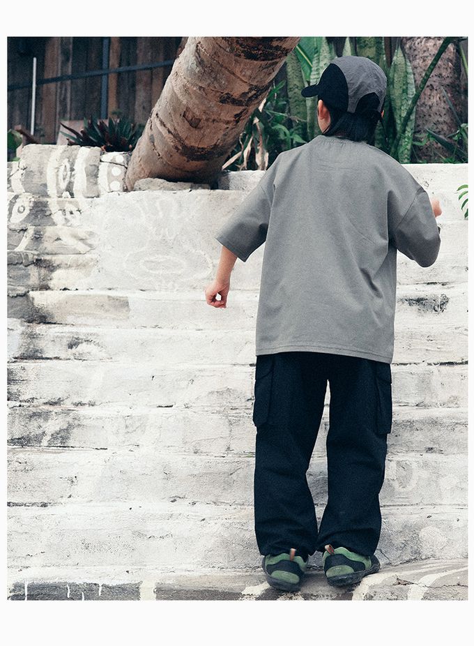Y B S - 純棉圓領短袖上衣-拉鍊口袋-灰綠色