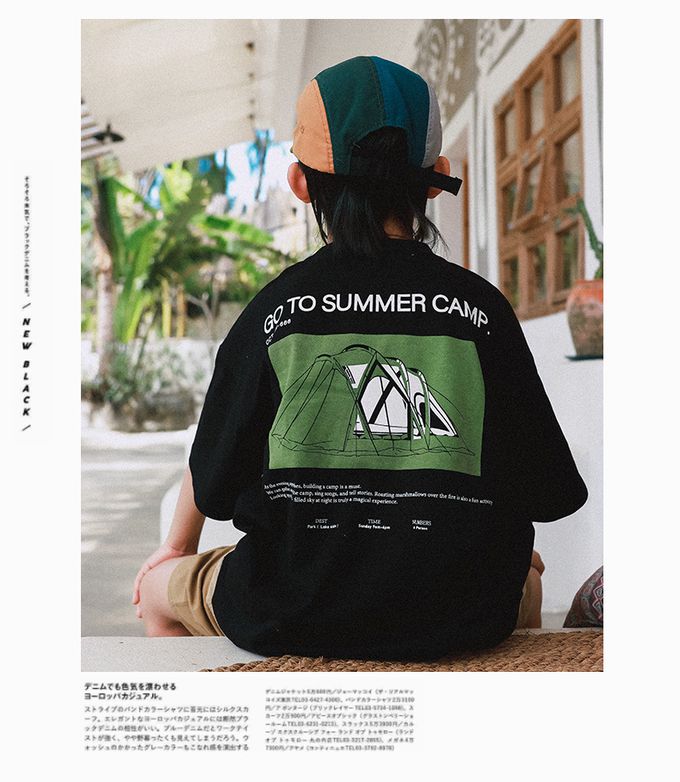 Y B S - 純棉圓領短袖上衣-夏日露營-白色