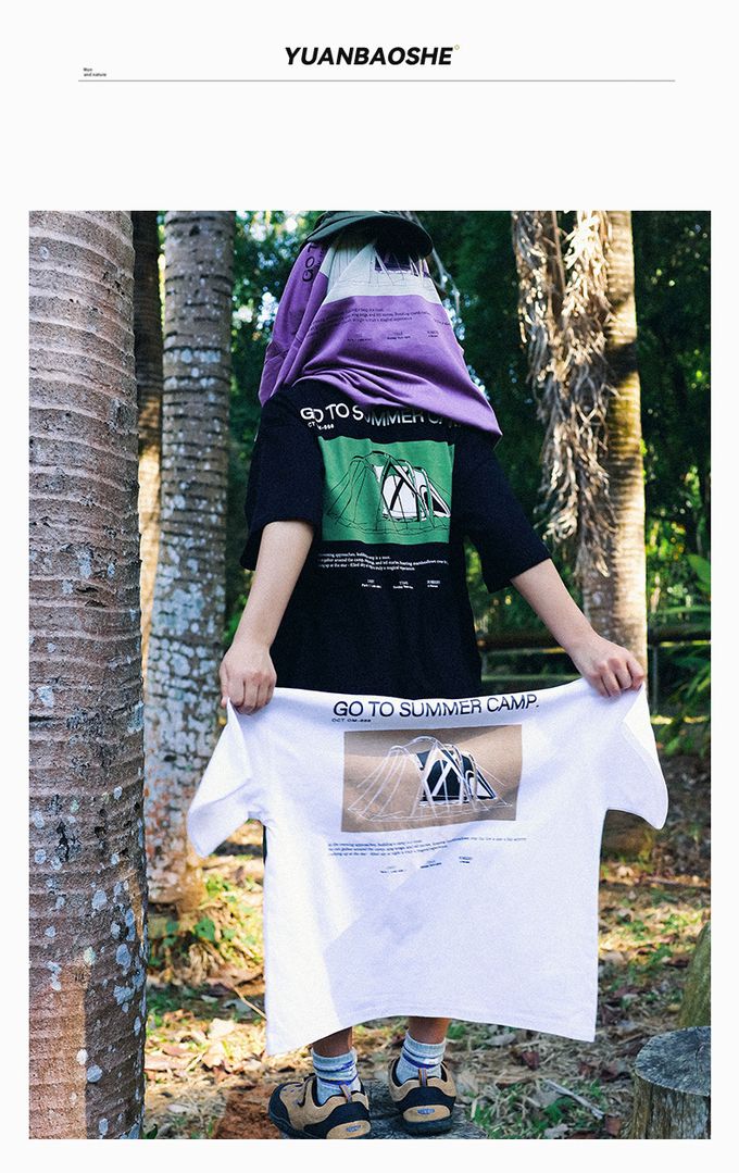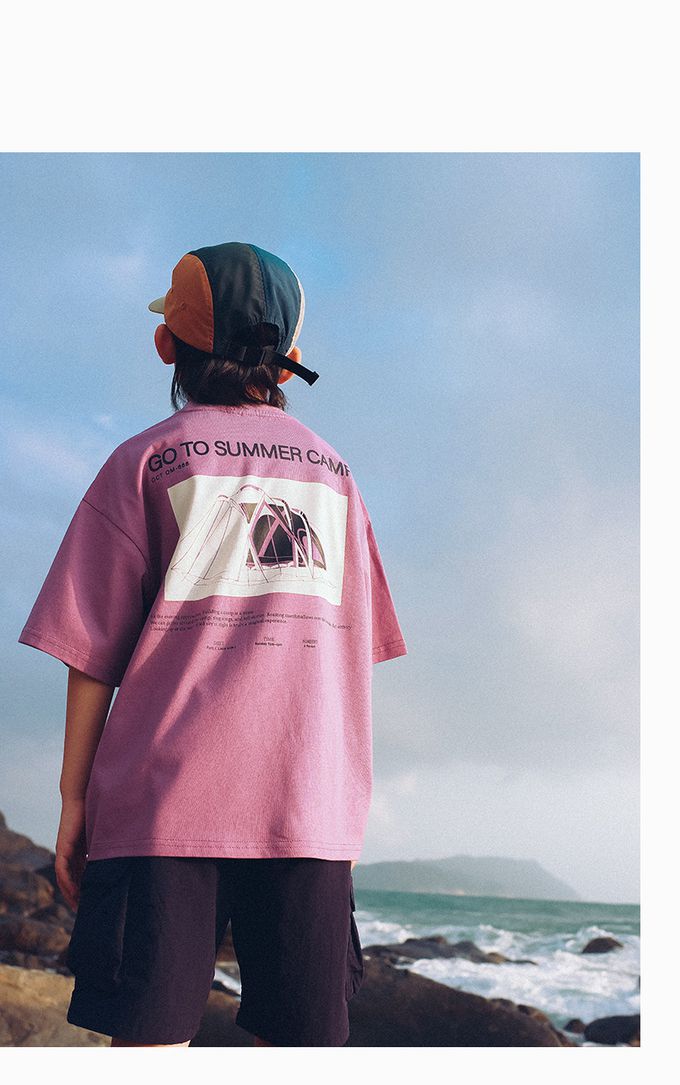 Y B S - 純棉圓領短袖上衣-夏日露營-紫色