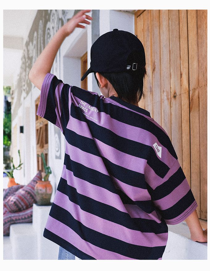 棉質圓領短袖上衣-條紋-紫色