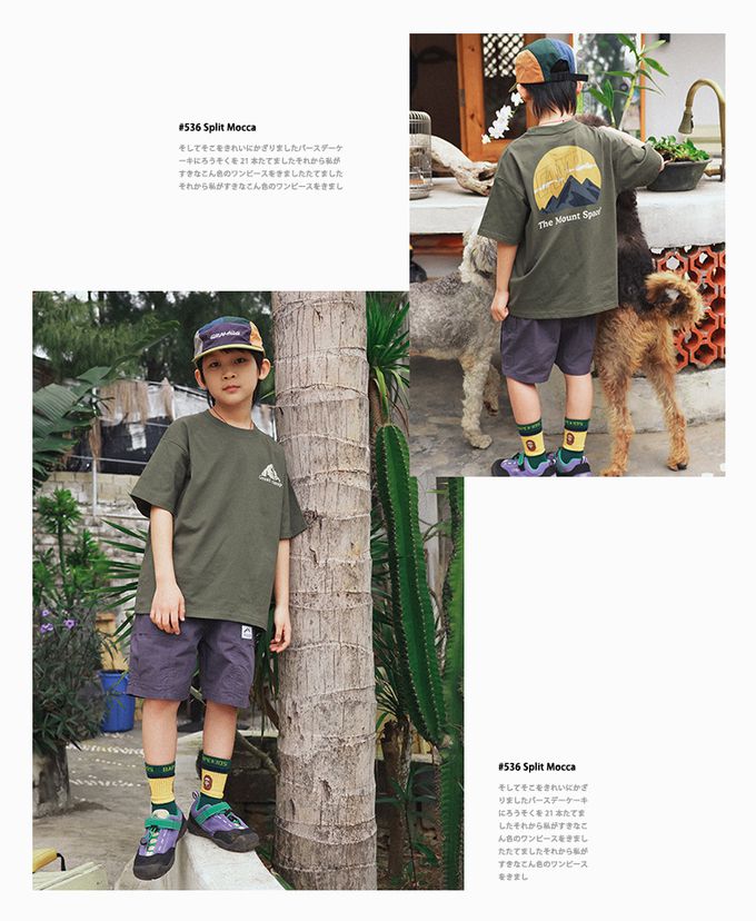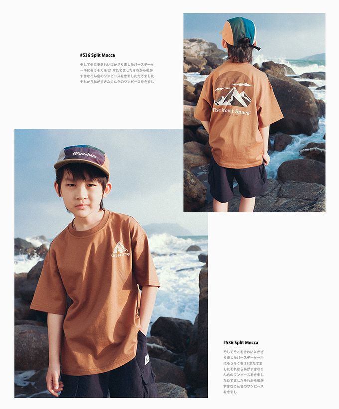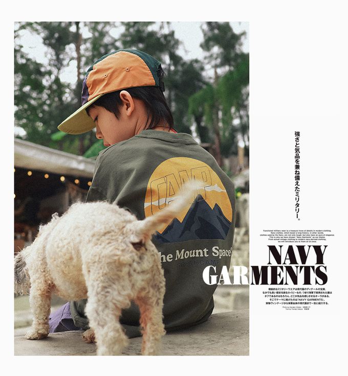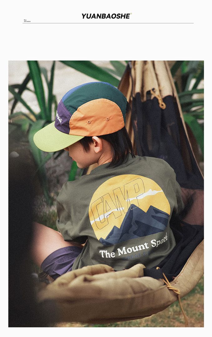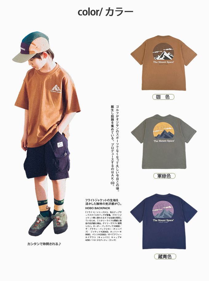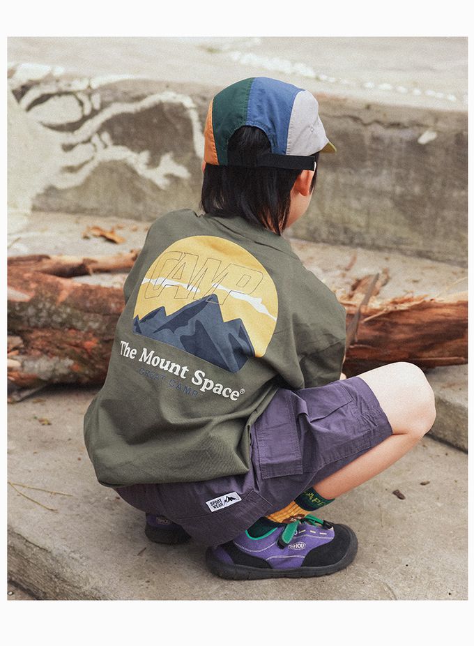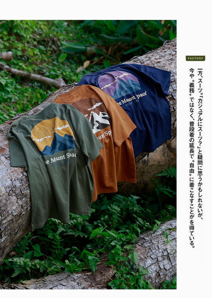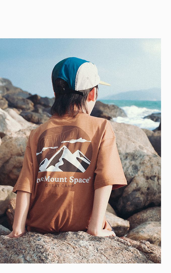 Y B S - 純棉圓領短袖上衣-山系露營-咖色