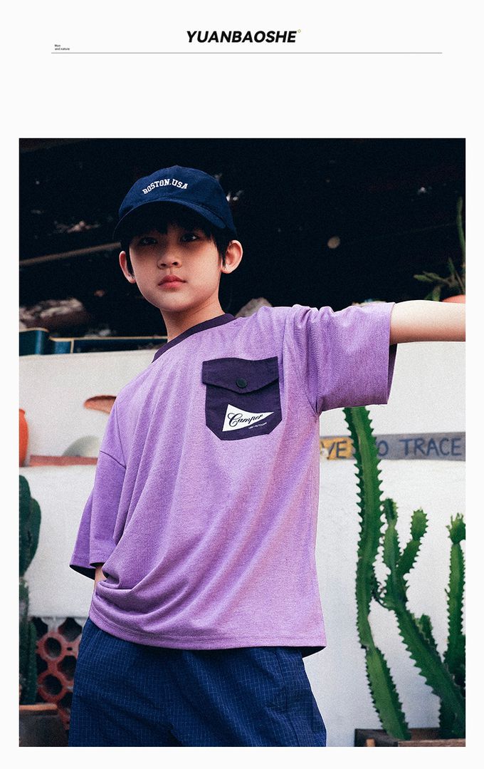 Y B S - 吸濕快乾圓領短袖上衣-前口袋後印花-寶藍