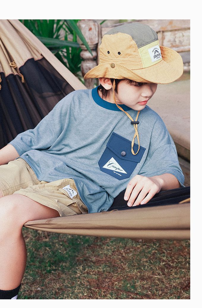 吸濕快乾圓領短袖上衣-撞色口袋-藍色