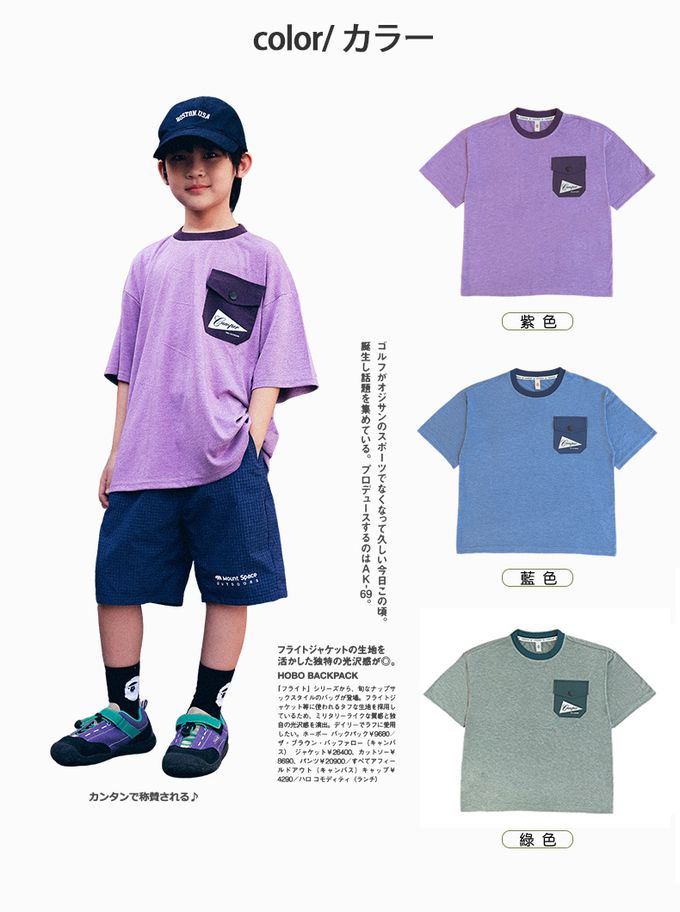 Y B S - 吸濕快乾圓領短袖上衣-前口袋後印花-灰藍