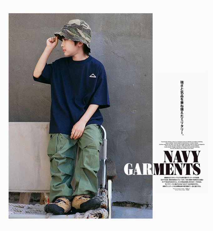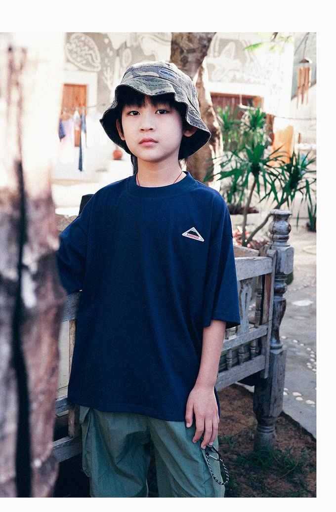 Y B S - 純棉圓領短袖上衣-撞色拼接口袋-藏青色