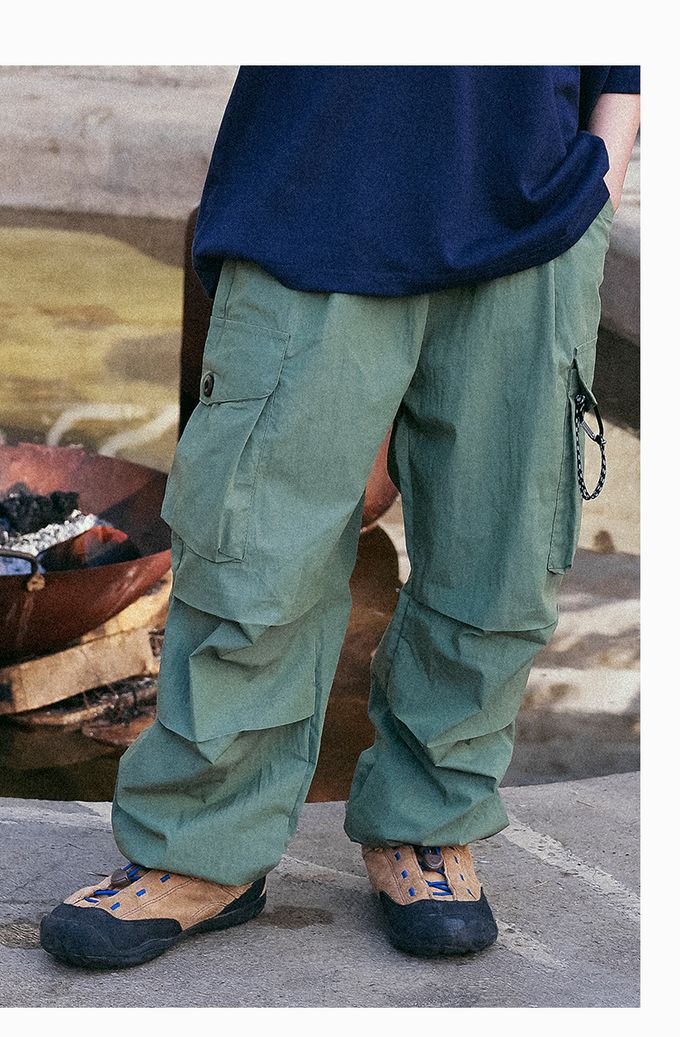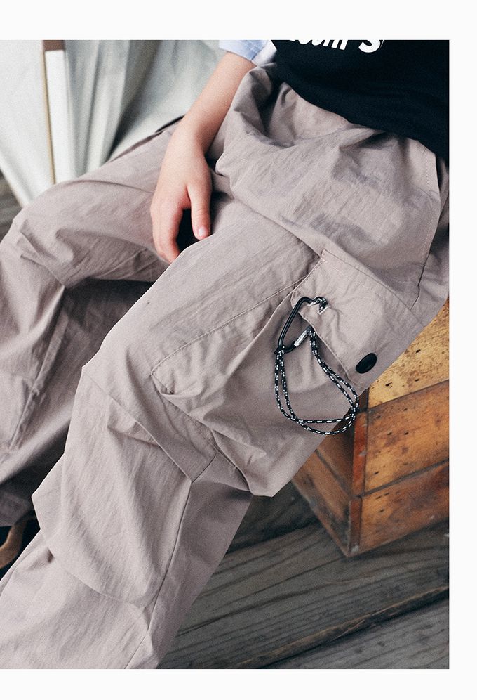 腰鬆緊輕薄休閒束口長褲/防蚊褲-雙口袋-卡其色