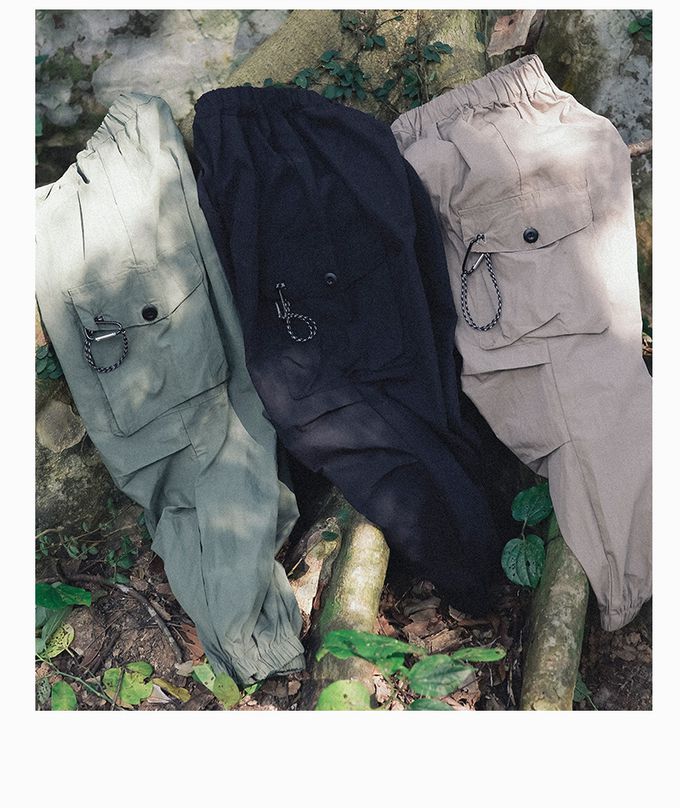Y B S - 腰鬆緊輕薄休閒束口長褲/防蚊褲-雙口袋-卡其色