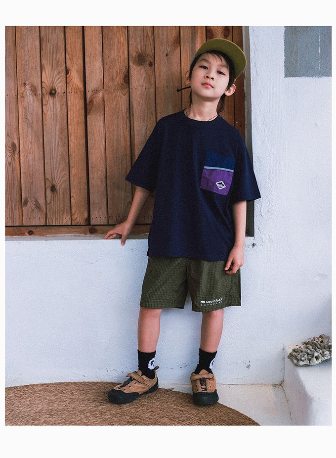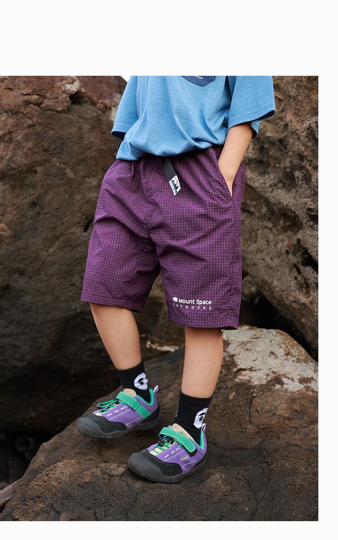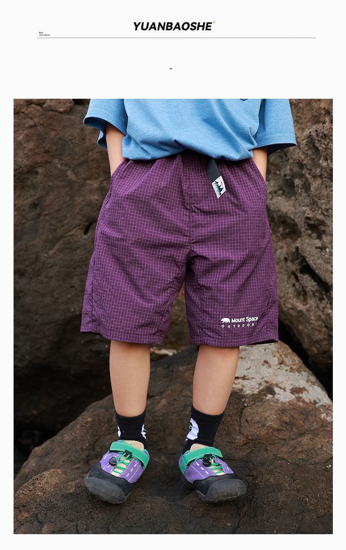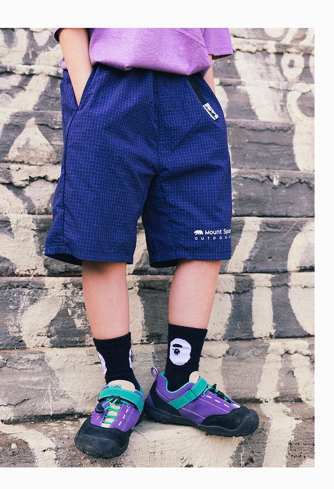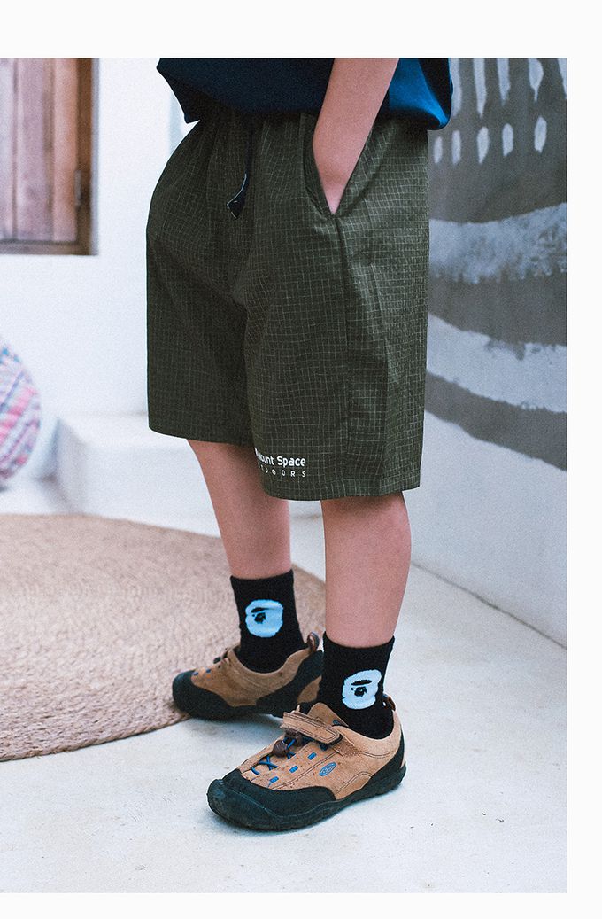 輕薄抗撕裂速乾休閒五分褲-細格-藍色