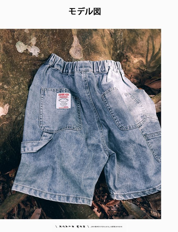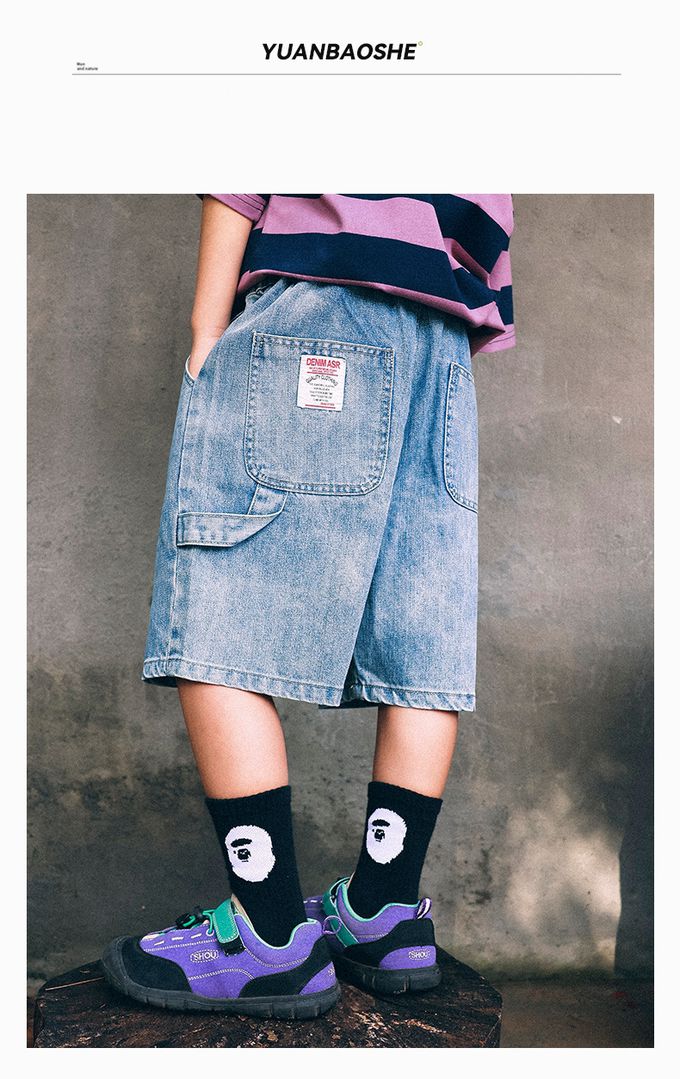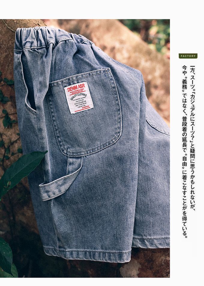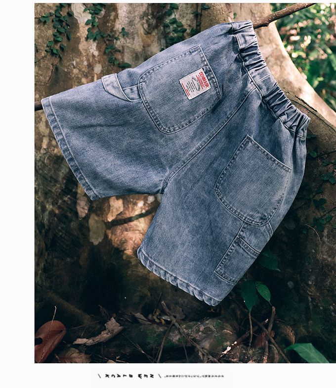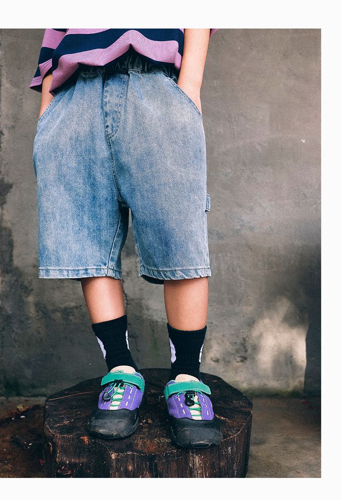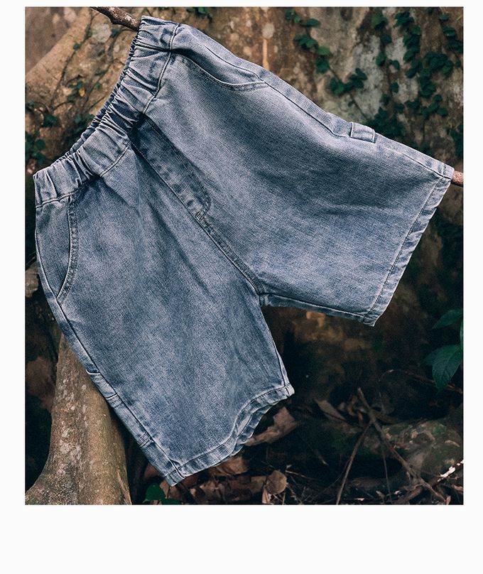 Y B S - 純棉腰鬆緊牛仔五分褲-水洗藍