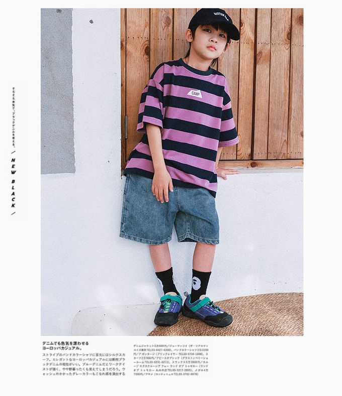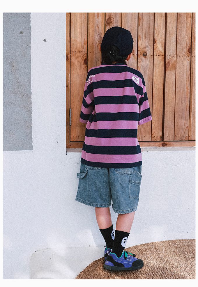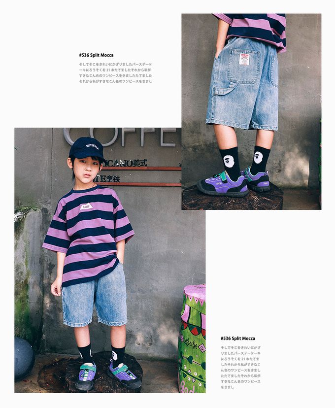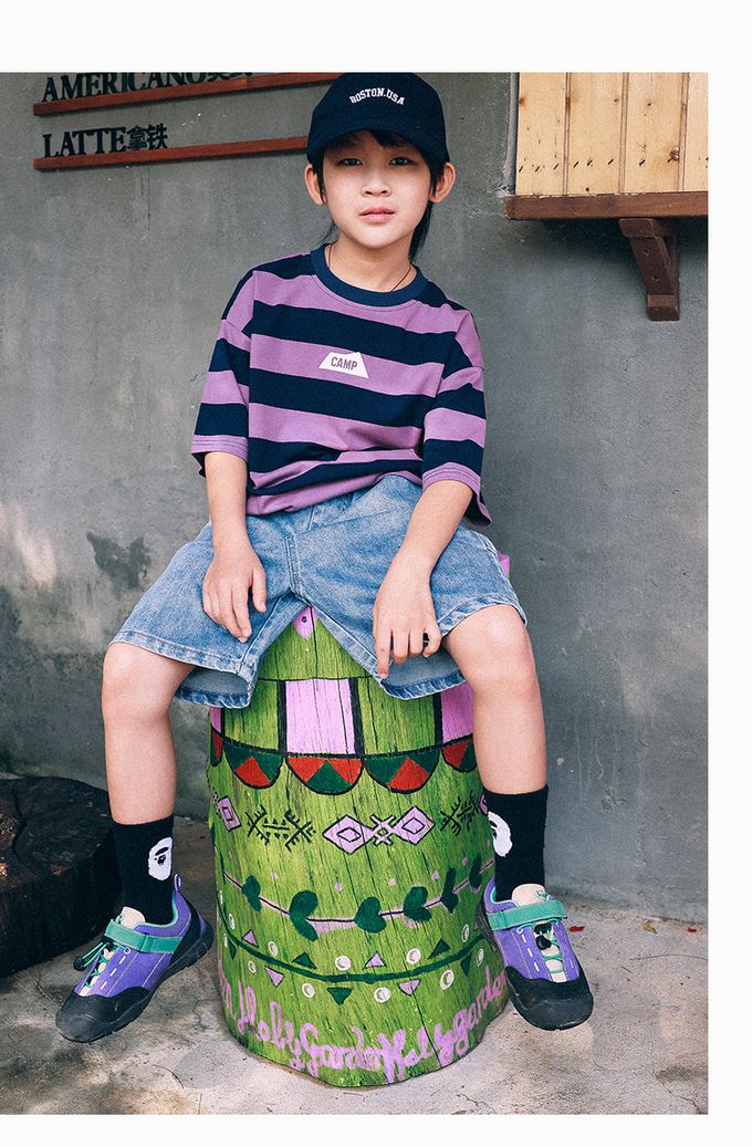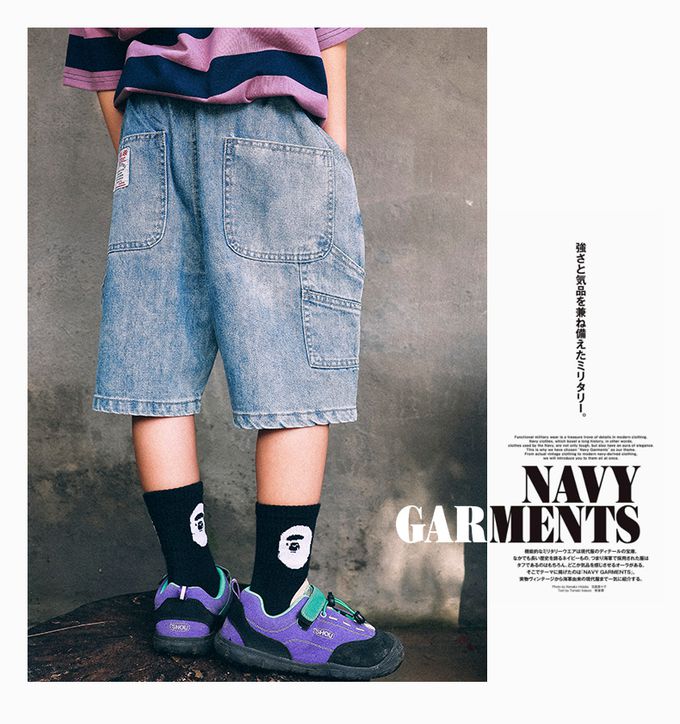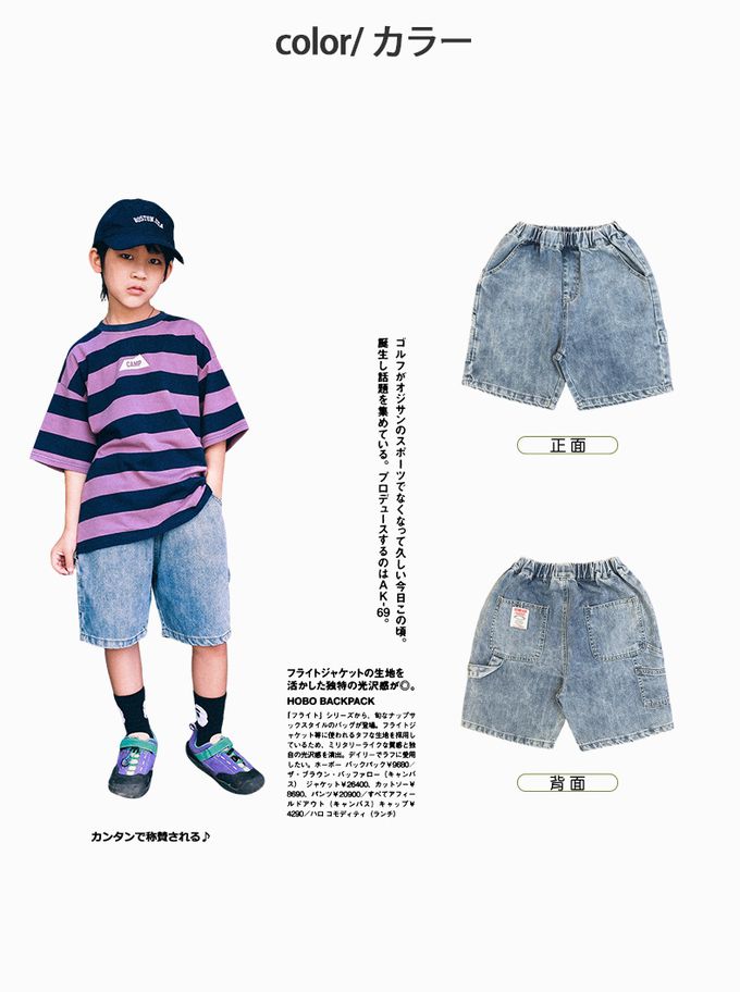 Y B S - 純棉腰鬆緊牛仔五分褲-水洗藍