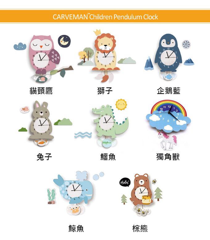 企鵝藍、兔子、棕熊、獅子、獨角獸、貓頭鷹、鯨魚、鱷魚