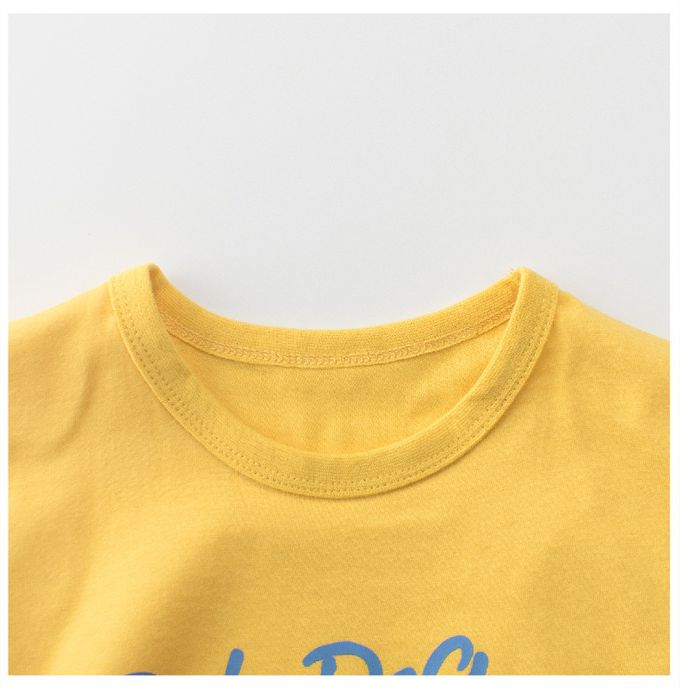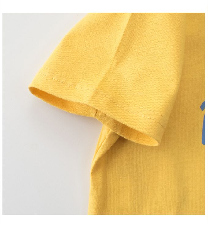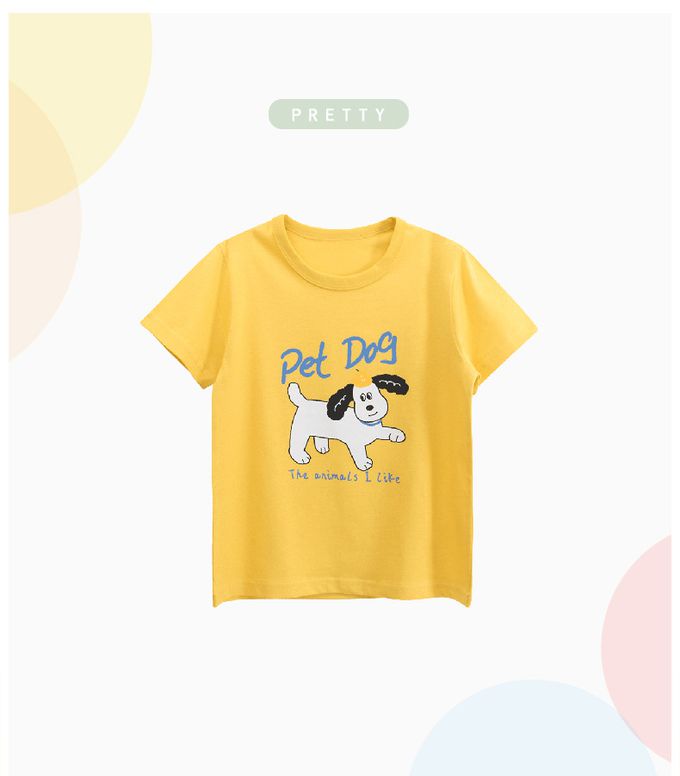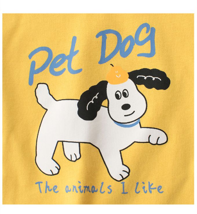純棉短袖上衣-黑耳朵狗狗-黃色