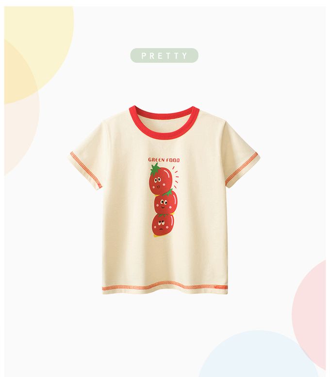 純棉短袖上衣-疊疊番茄-米杏