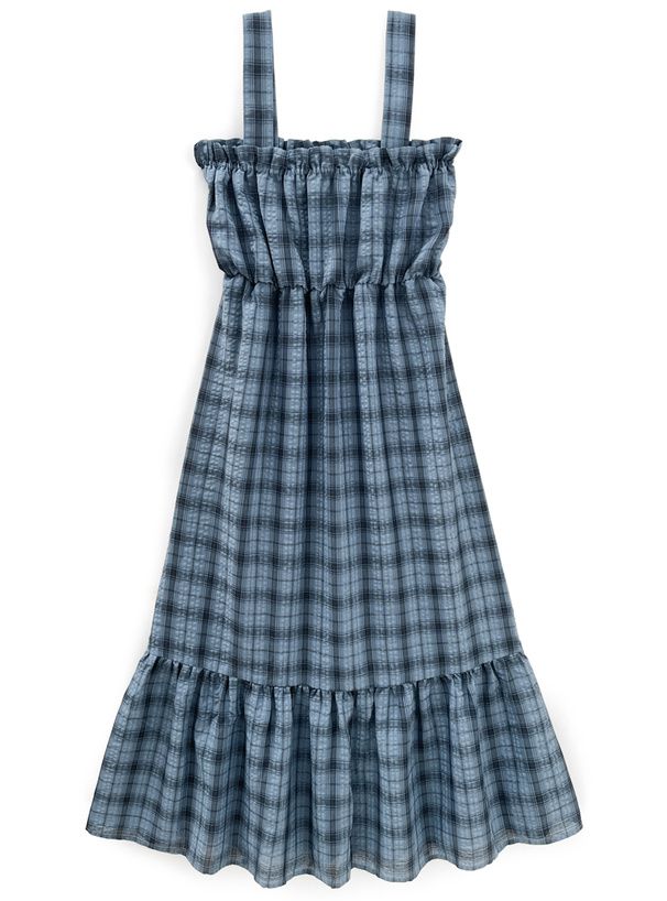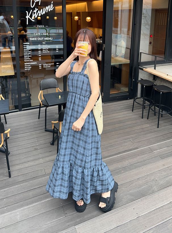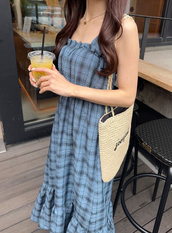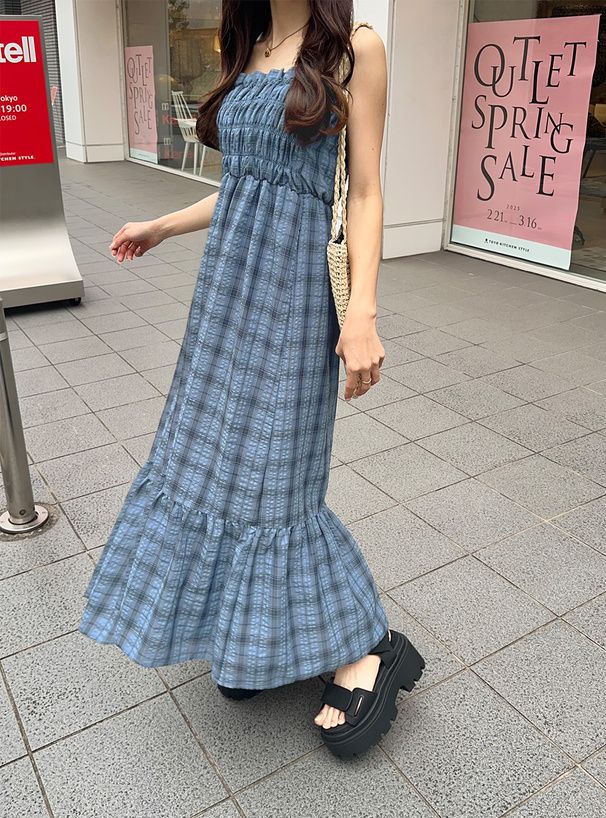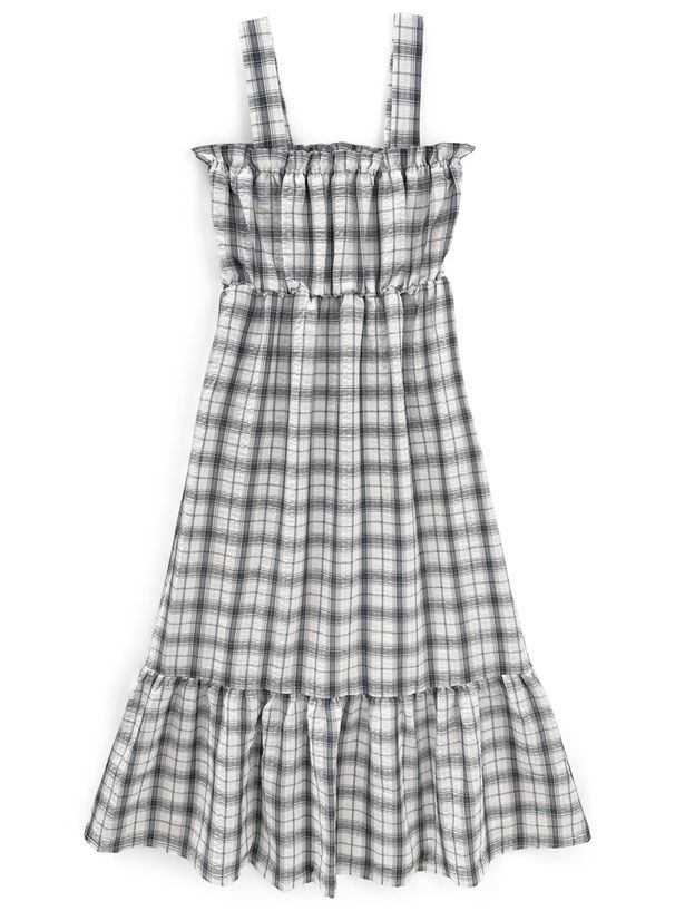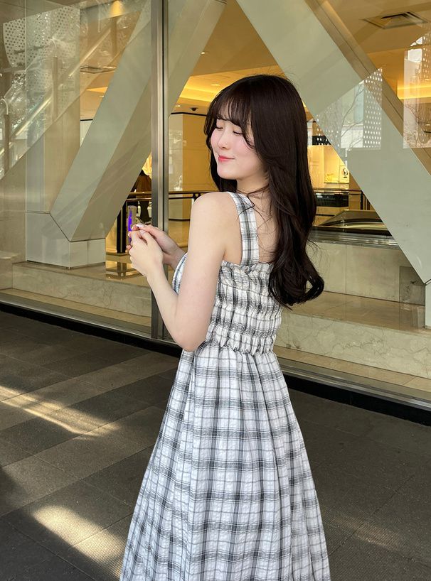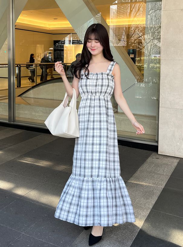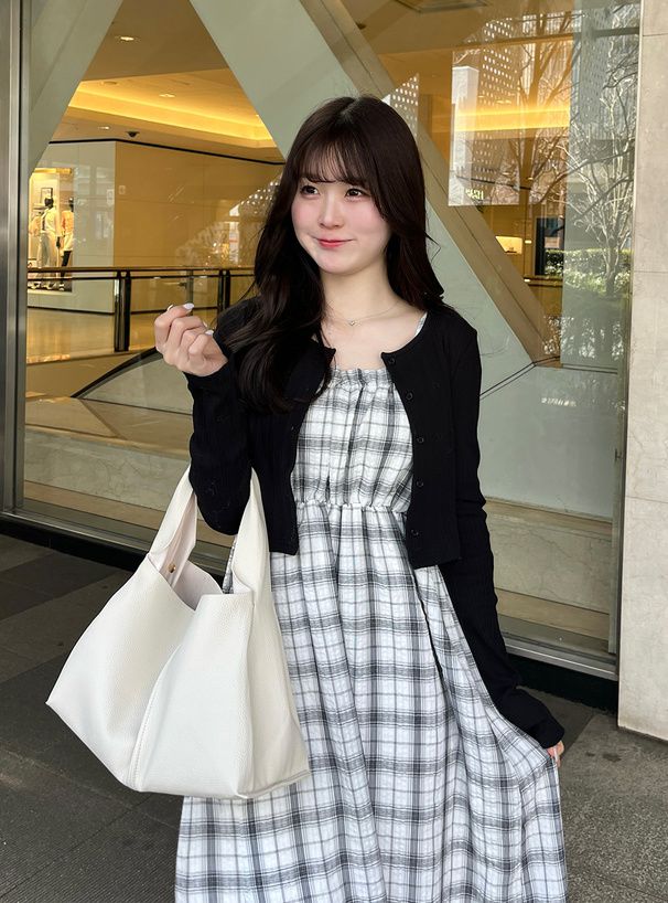日本 GRL - 氣質格紋合身無袖針織洋裝-黑X格紋