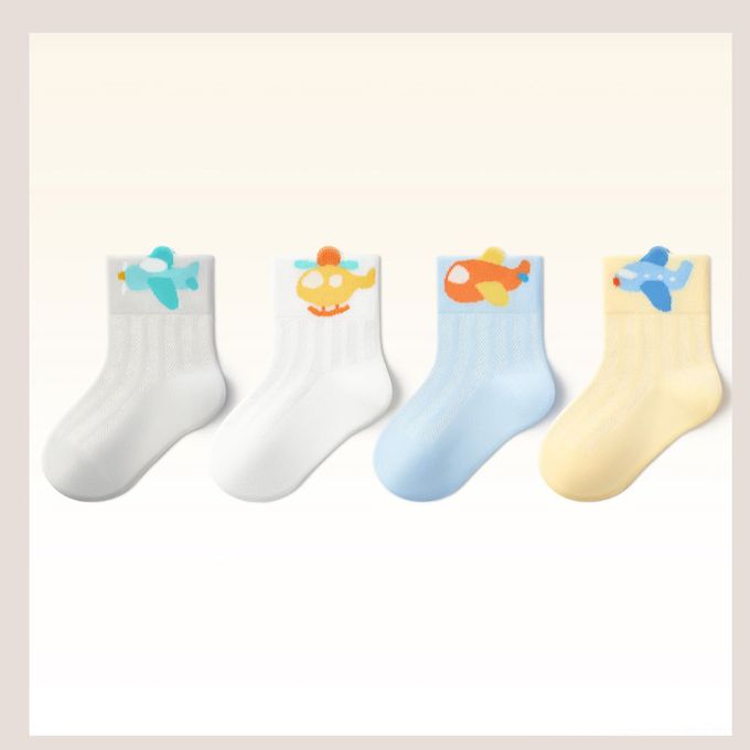 卡通飛行交通工具大集合網眼短筒棉襪-4 雙一組