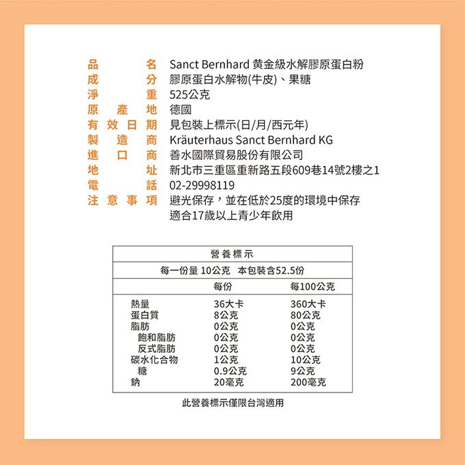 Sanct Bernhard 德國百年草本-黃金級水解膠原蛋白粉 (525克/罐)