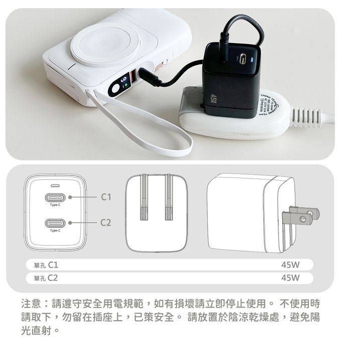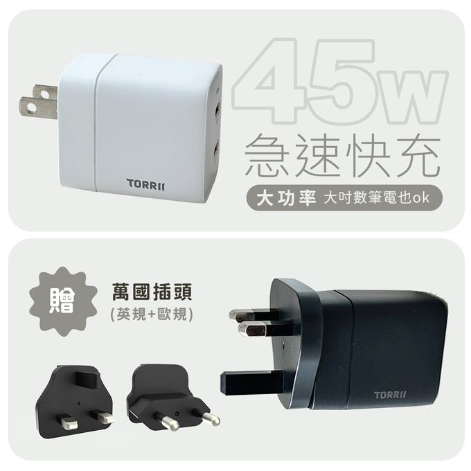品名:45W 2C 氮化鎵GaN快充充電器(贈萬國轉接頭)