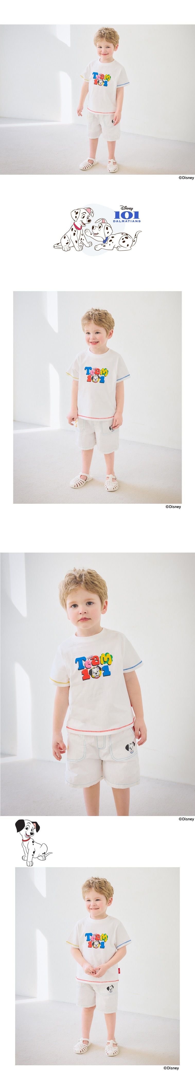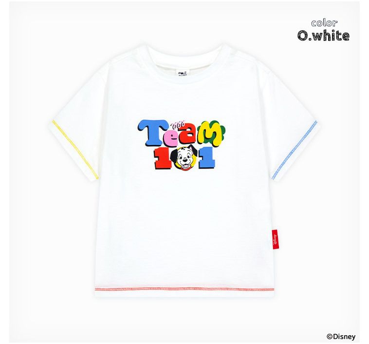 韓國 mollimelli - (聯名款)卡通人物101忠狗撞色字短袖上衣-白