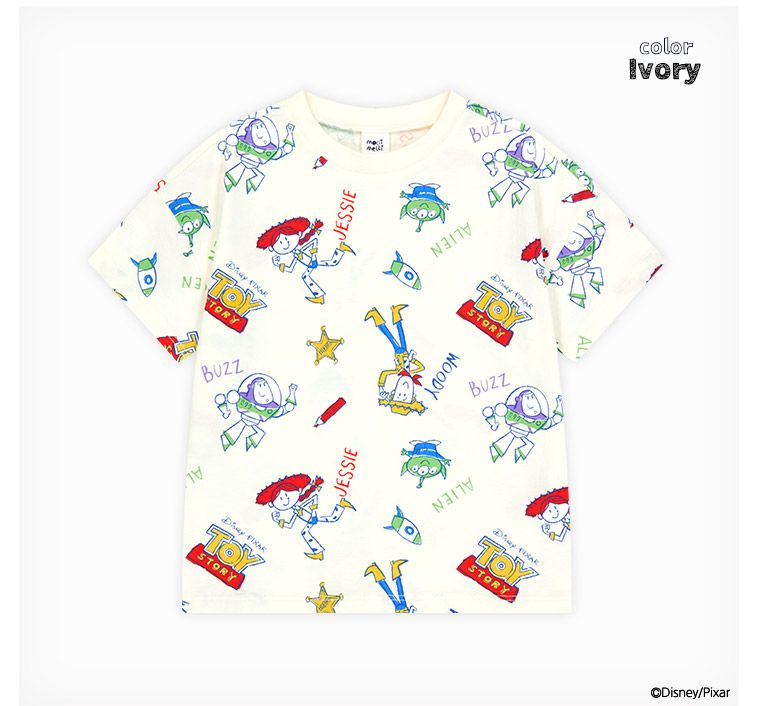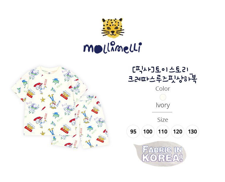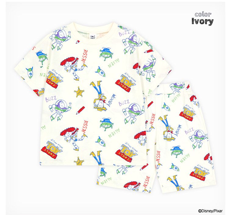 韓國 mollimelli - (聯名款)卡通玩具總動員手繪風短袖套裝-米白