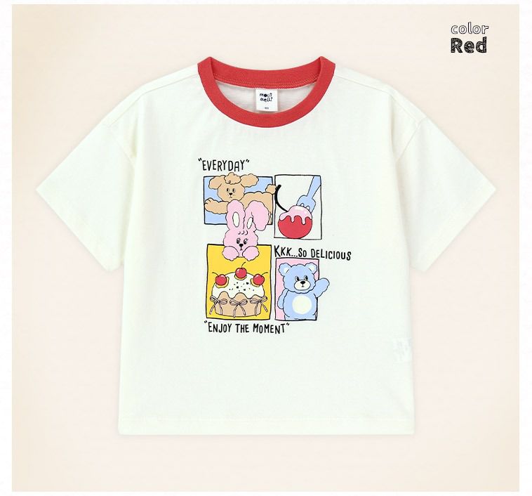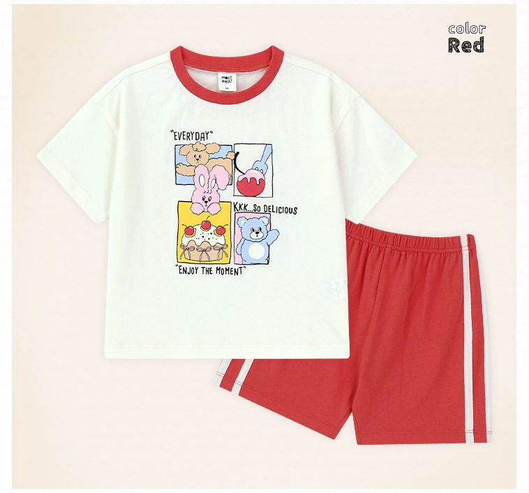 韓國 mollimelli - 雲朵動物四格漫運動風短袖套裝-白X紅