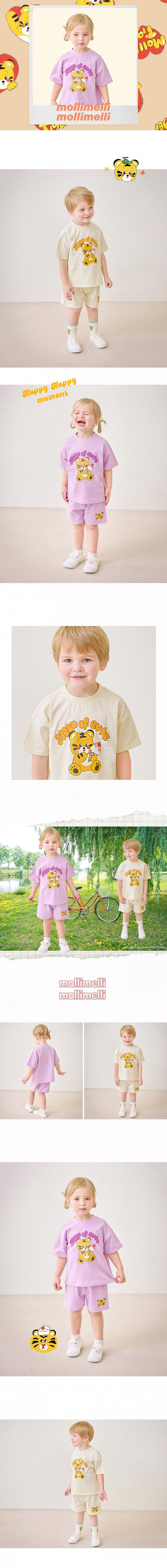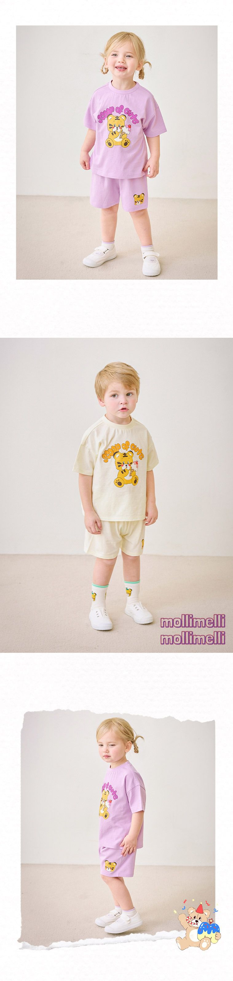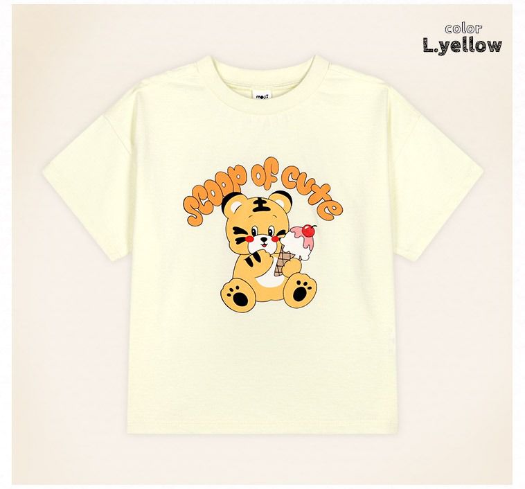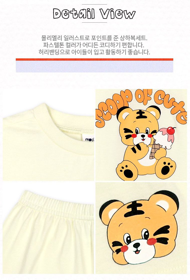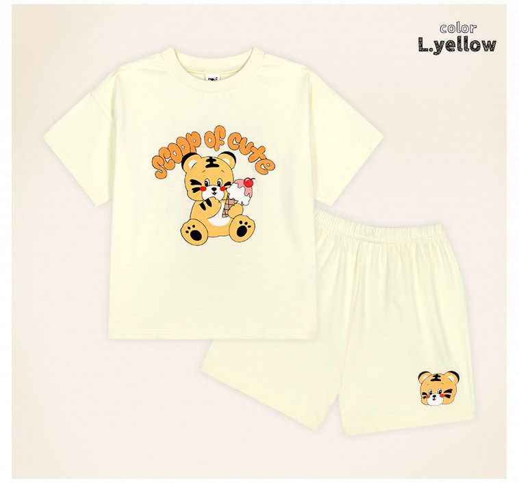 韓國 mollimelli - 萌虎冰淇淋落肩短袖套裝-米黃