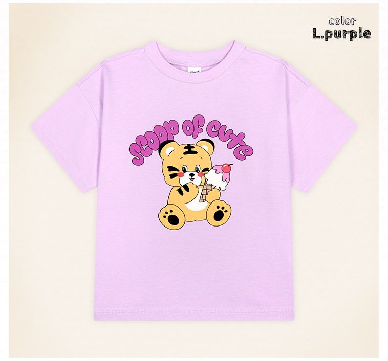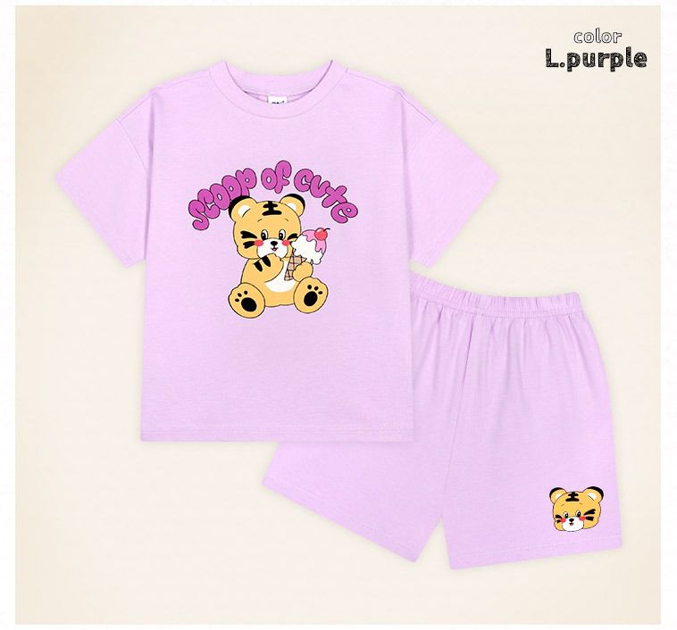 韓國 mollimelli - 萌虎冰淇淋落肩短袖套裝-淡葡萄紫